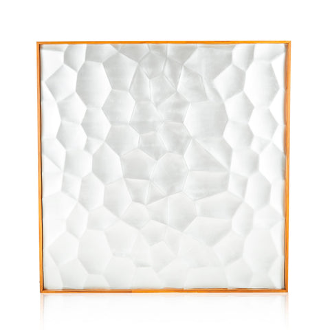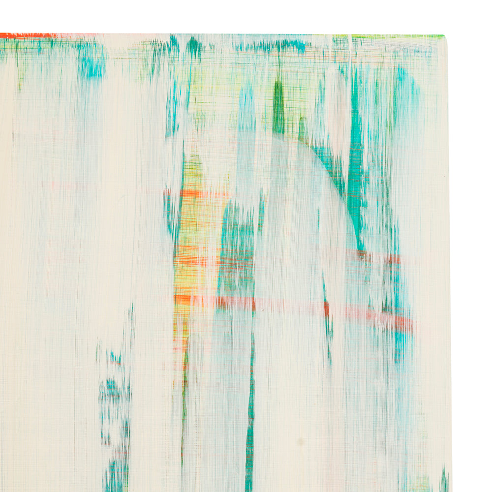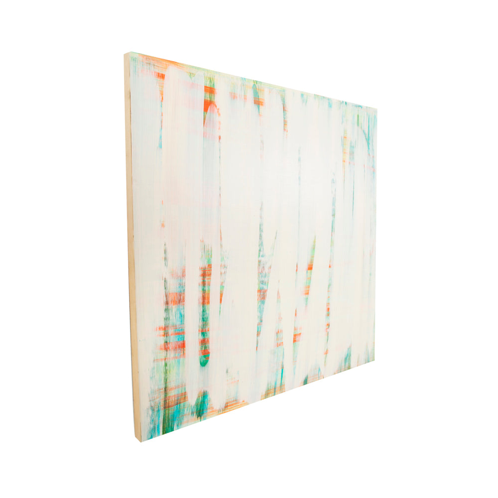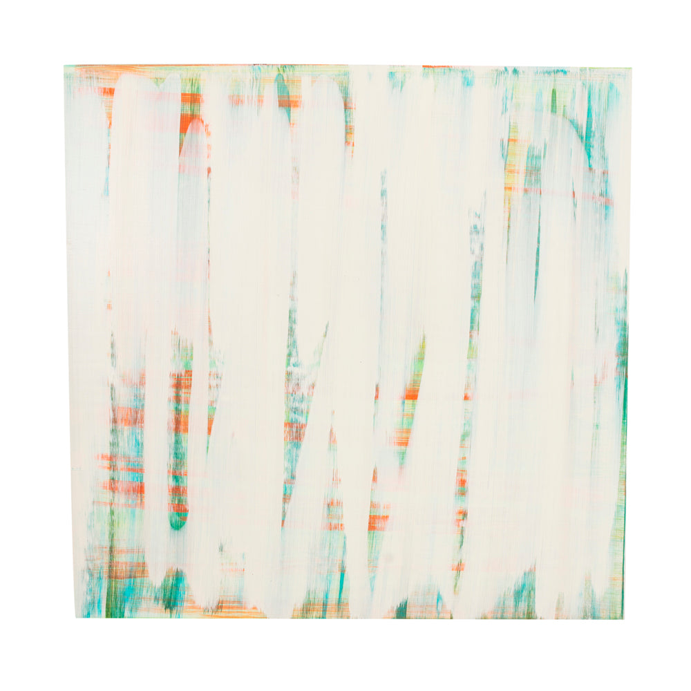 Details: Abstract white, blue, and orange painting on wood canvas Dimensions: 30" W x 30" H Quantity: 1