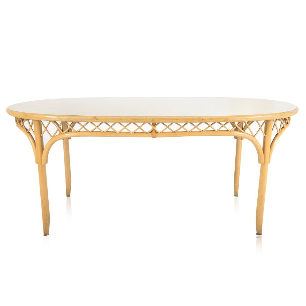Details: Off-White Lacquer Oval Dining Table Dimensions: 29" H x 54" W x 42.5" D Quantity: 1