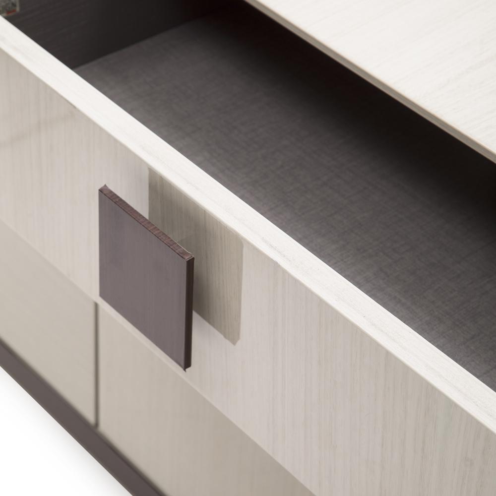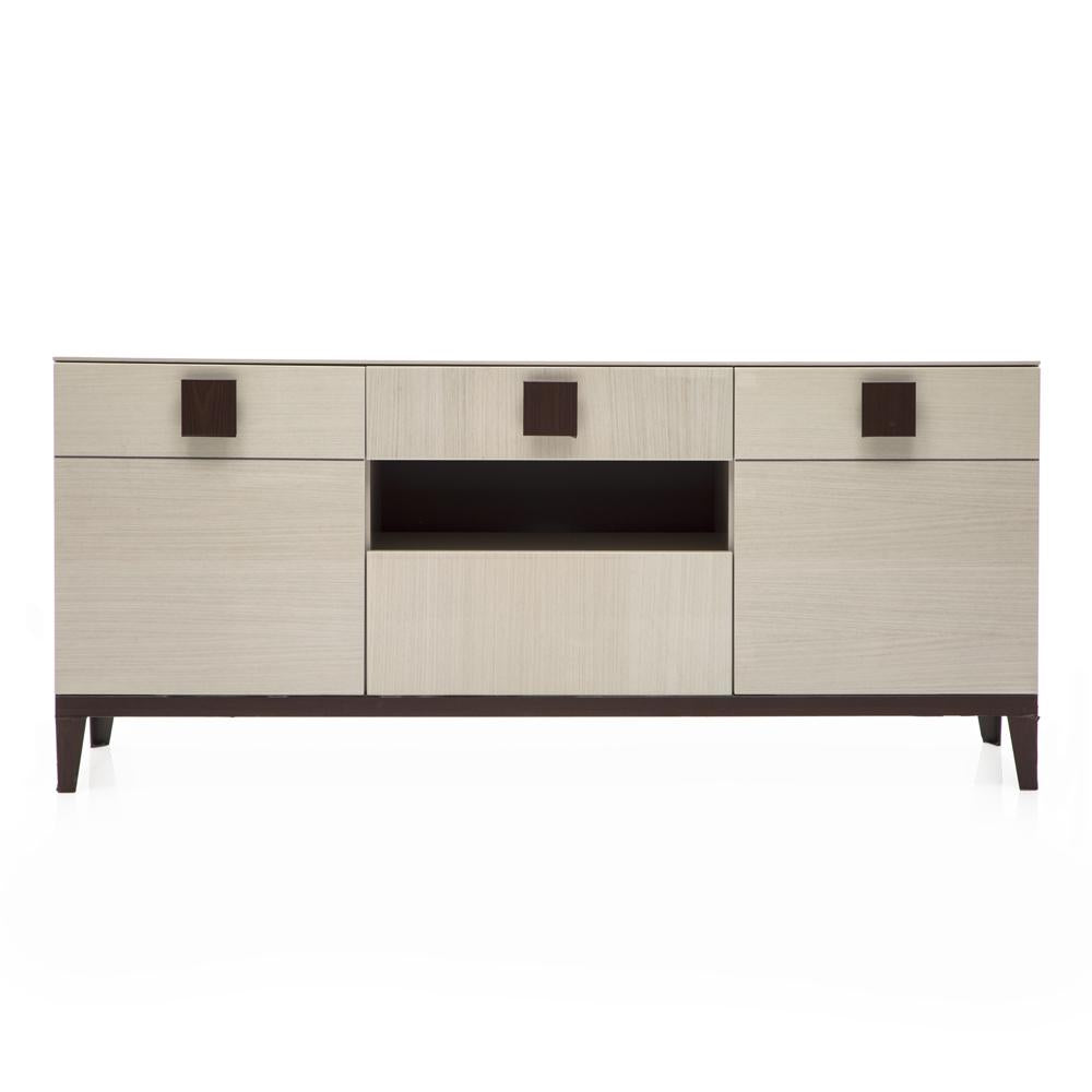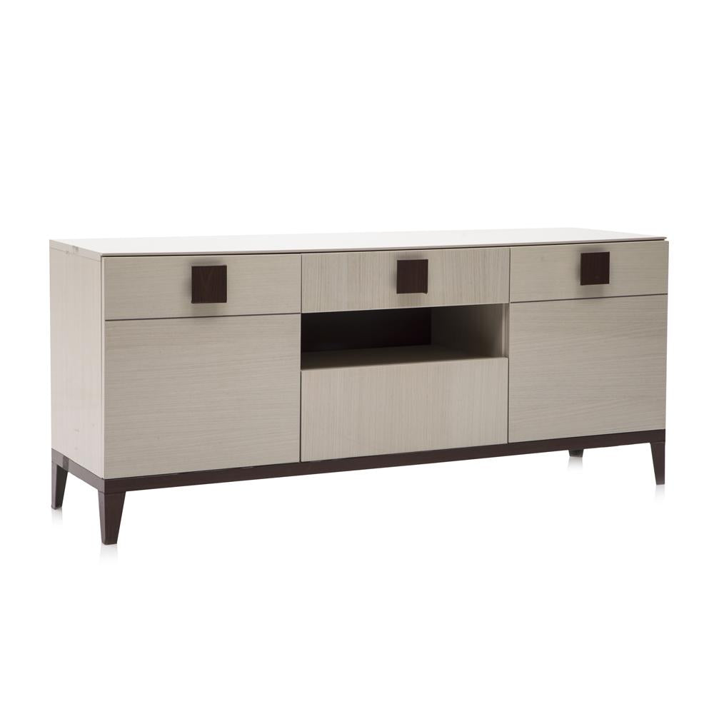 Details: Grey modern italian credenza with squared knobs. Dimensions: 28" H x 26" W x 17" D