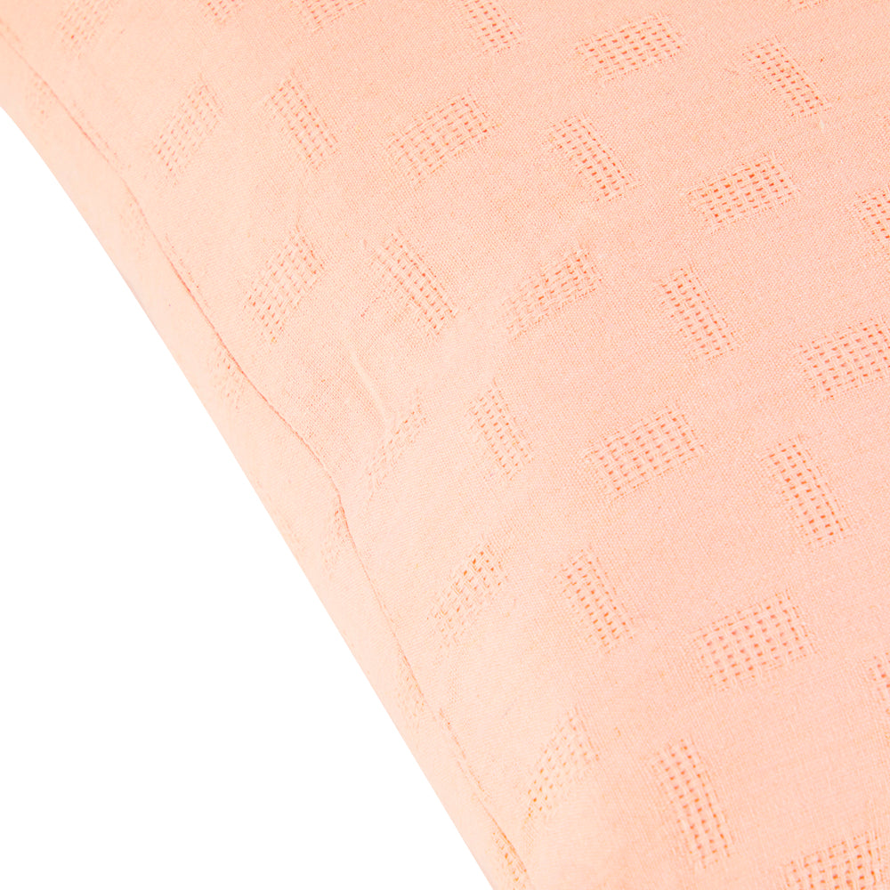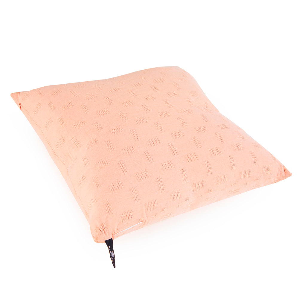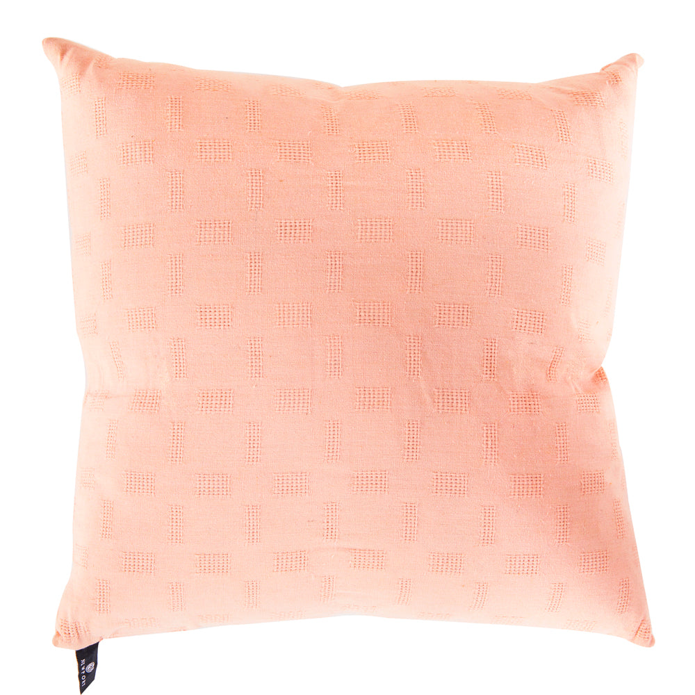 Details: Peach pillow with cross-weave pattern Dimensions: 20" H x 20" W x 6" Quantity: 2