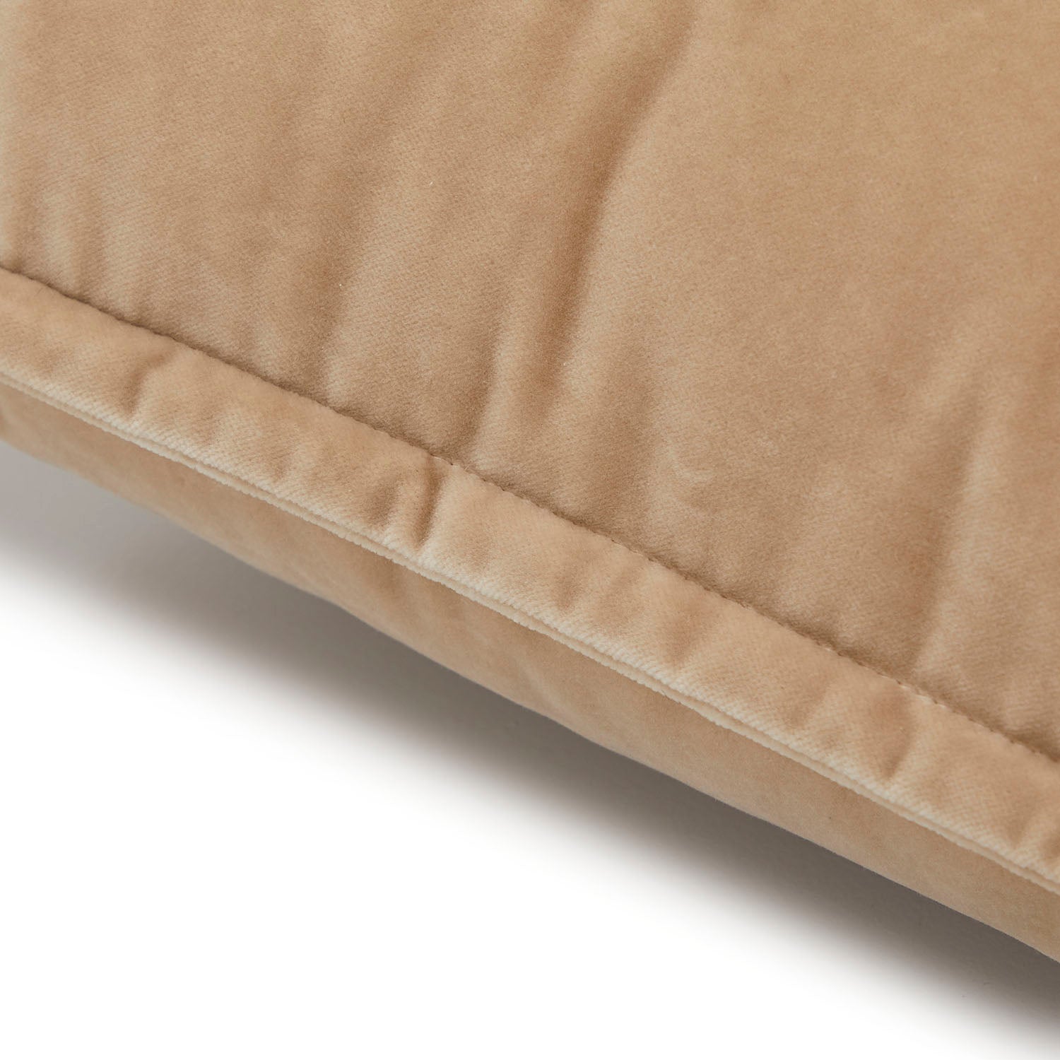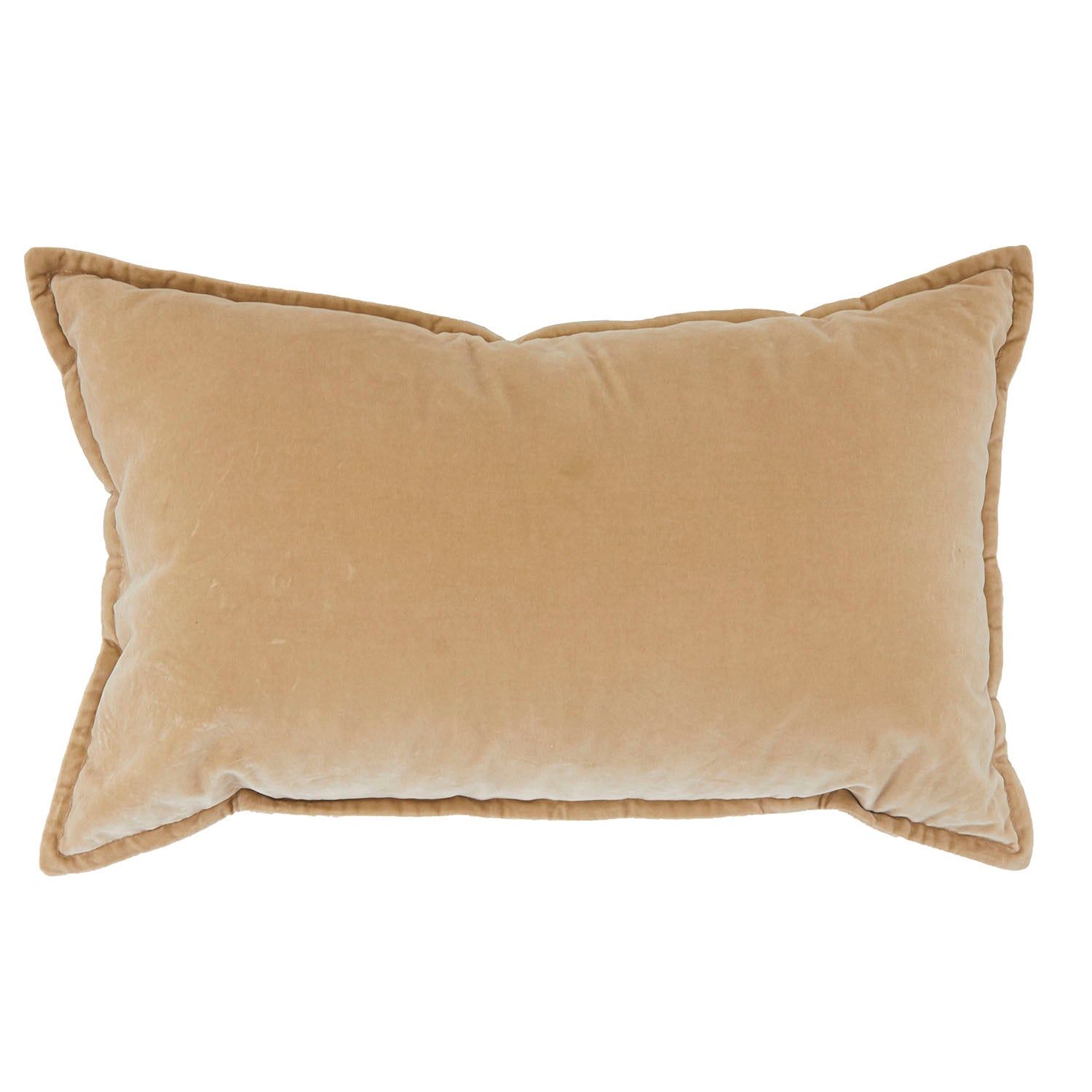 Details: Beige velvet lumbar pillow with flat edge