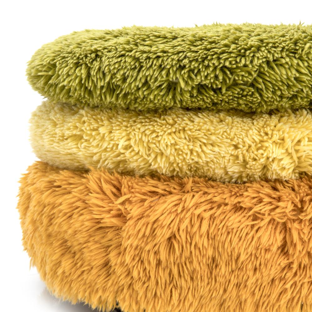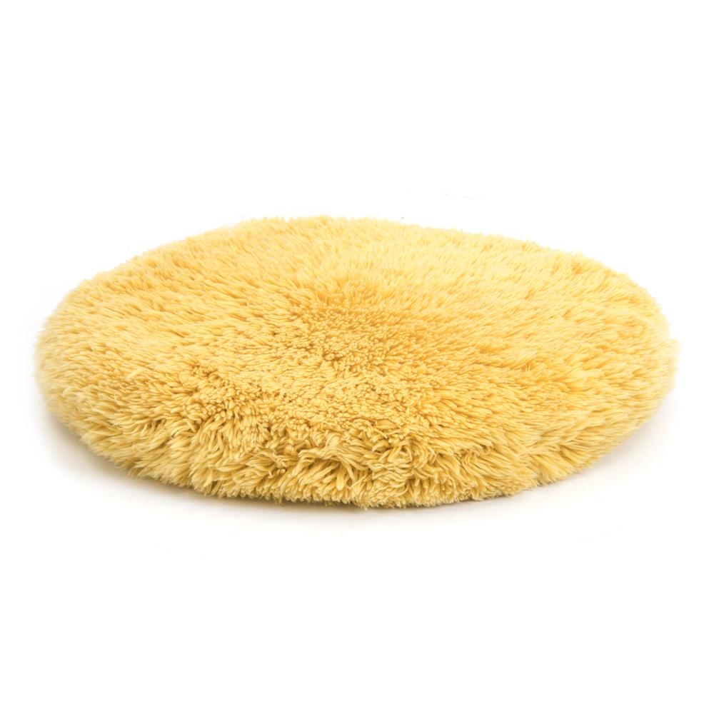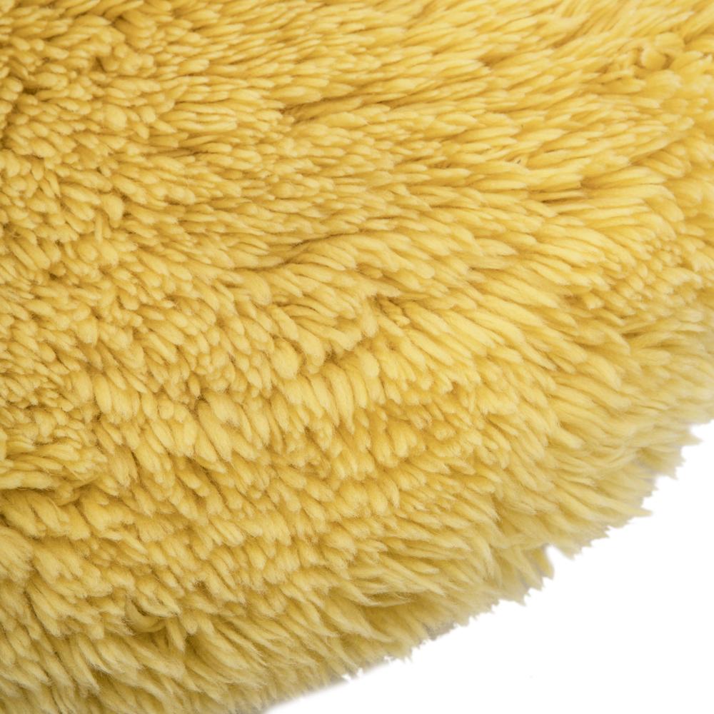 Details: Circular yellow and mustard pleated velvet throw pillow with center button Dimensions: 17" H x 17" W x 5" D Quantity: 1