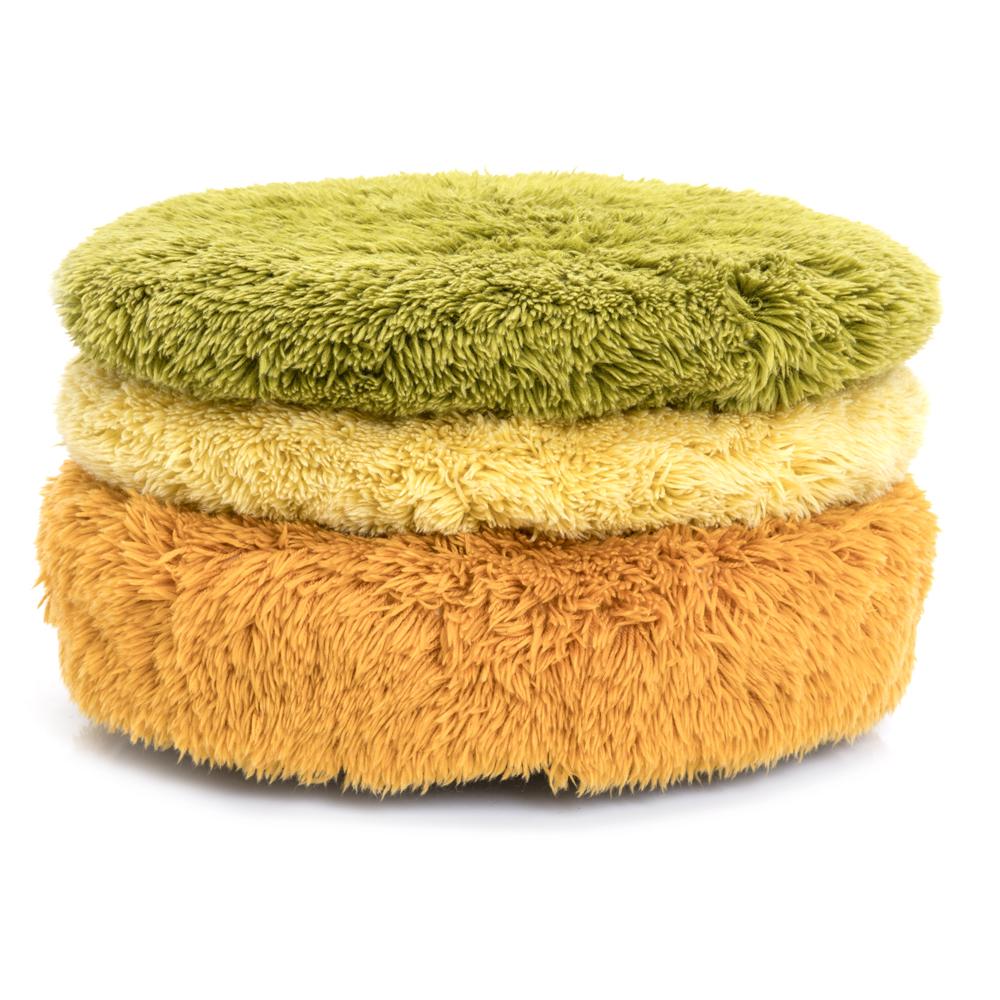 Details: Pale yellow floor pillow, smallest of set of 3 Dimensions: 25" L x 26" W