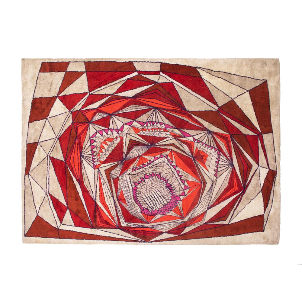 Details: Red modern abstract geometric cave rug Dimensions: 136" W x 98" H