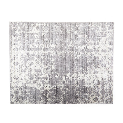 Details: Grey and white rug with abstract distressed design Dimensions: 96" W x 120" D Quantity: 1