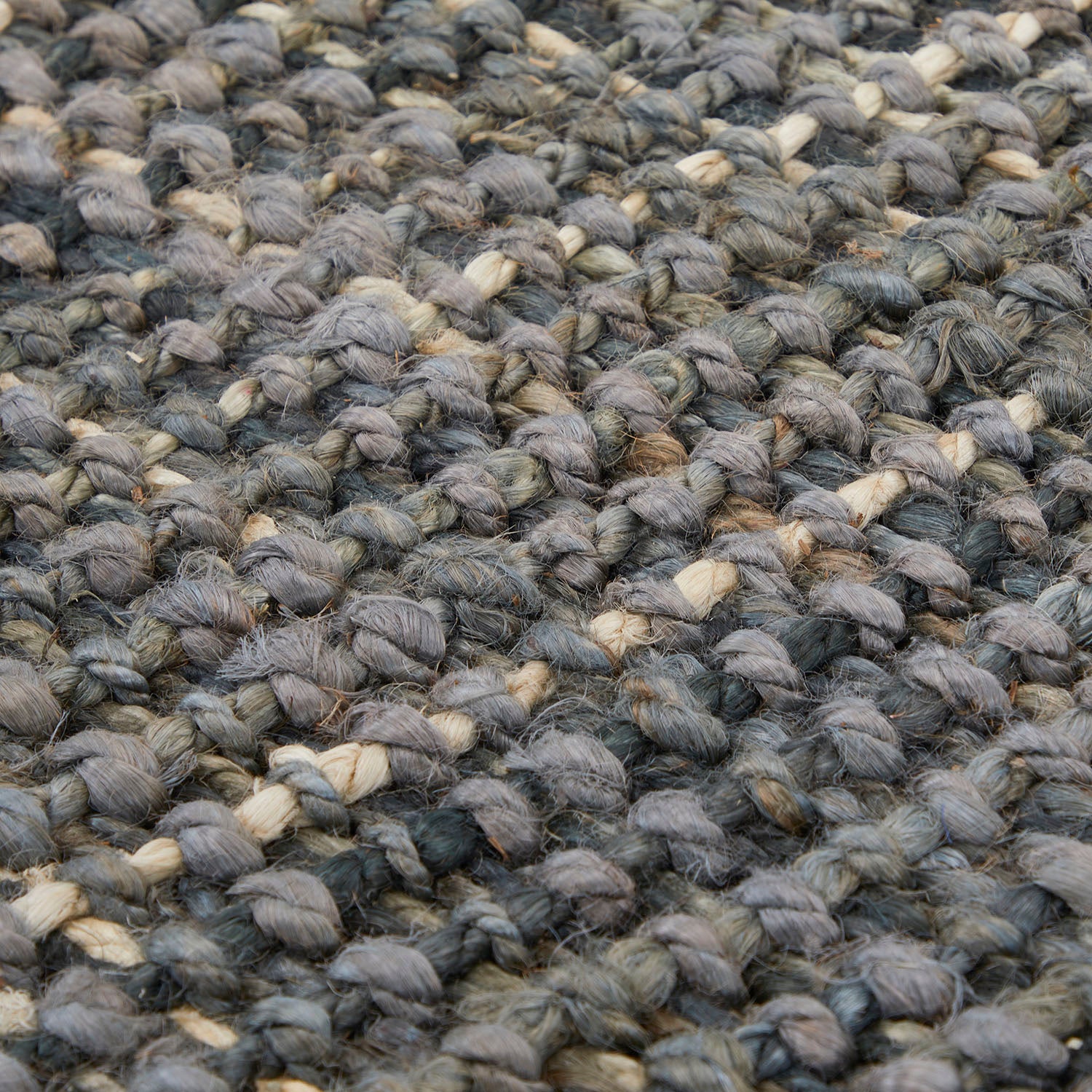 Details: Blue, grey, brown, and tan chunky woven textured rug Dimensions: 119" L x 98" W Quantity: 1