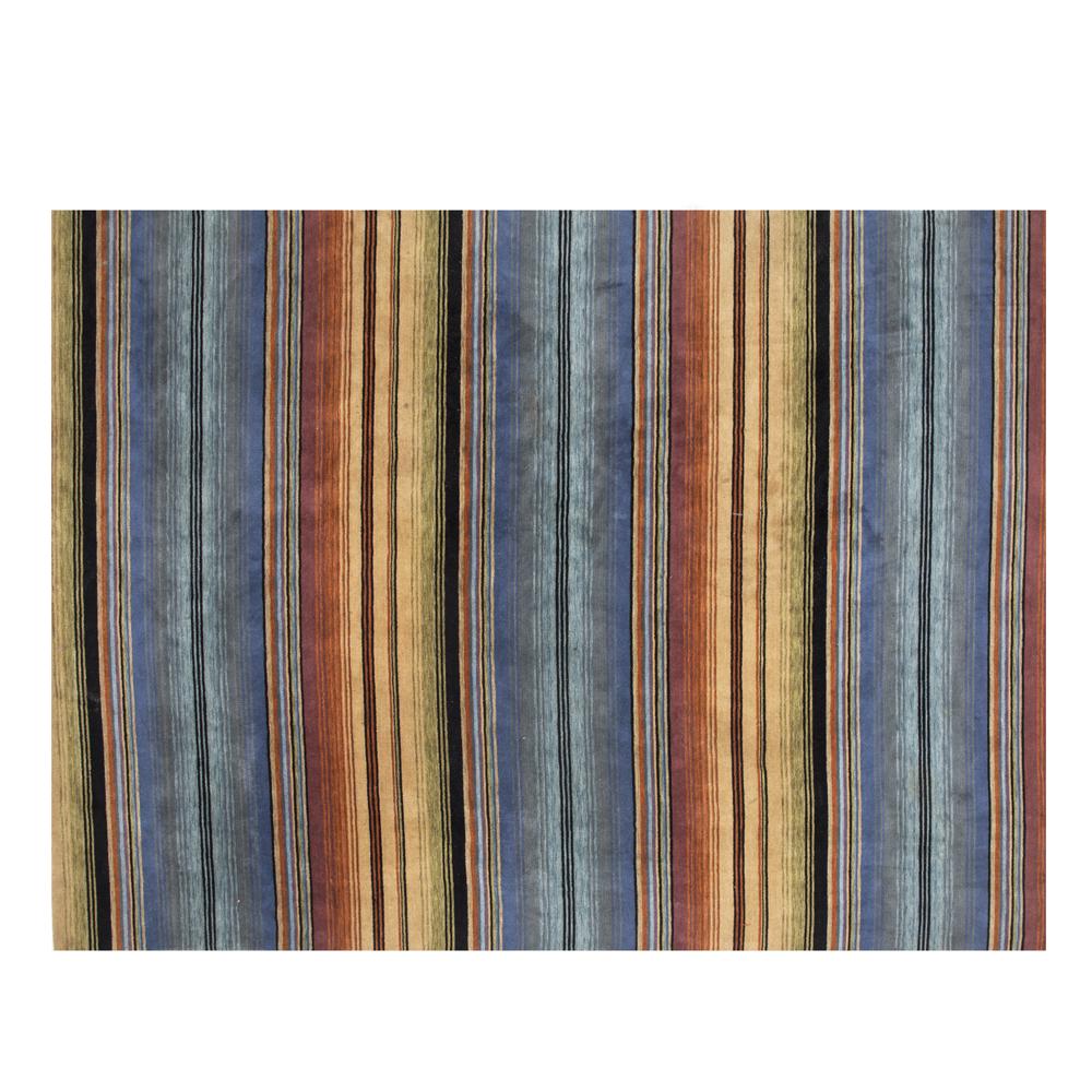 Details: Blue And Yellow Striped Rug With Red Border Dimensions: 52" X 68"