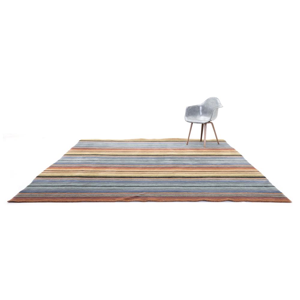 Details: Orange pink red grey cream rug with geometric lines and multicolored stripes Dimensions: 108 L" x 144 W"