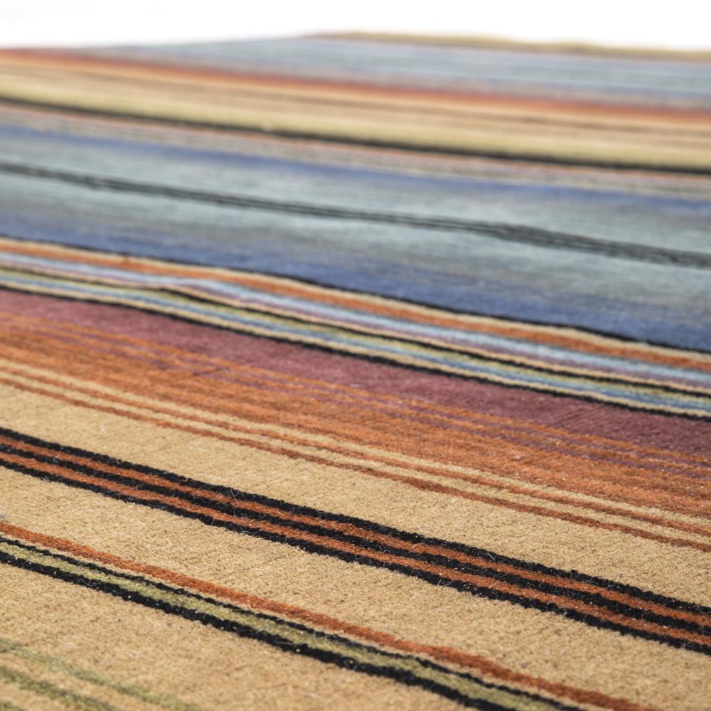 Details: Rainbow striped Southwestern style rug. Dimensions: 107" L x 146" W