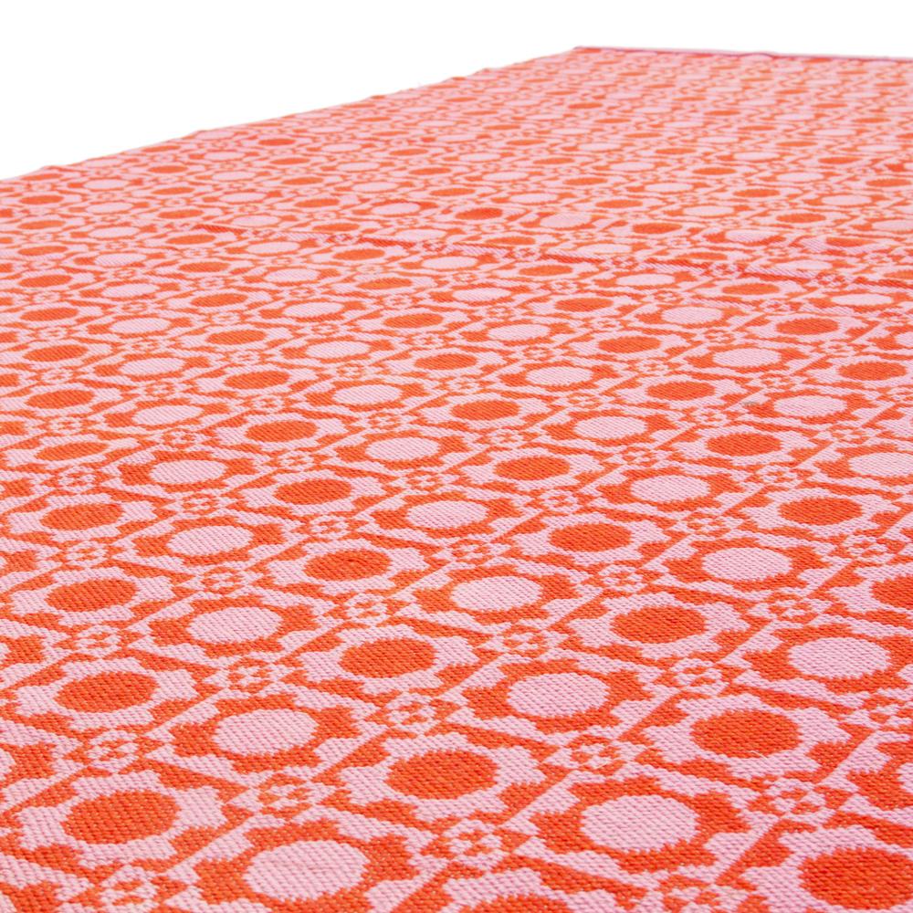Details: Orange graphic moroccan style rug. Dimensions: 104.5" L x 142" W