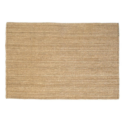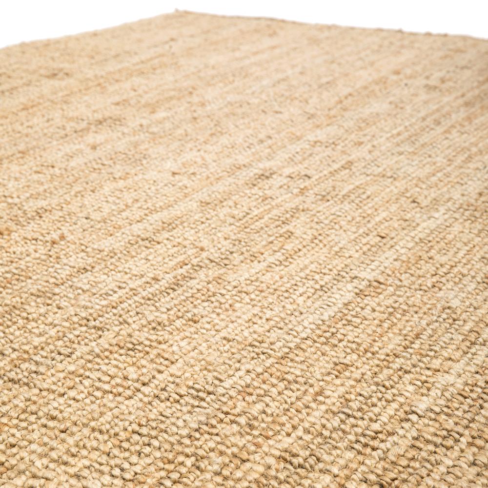 Details: Tan rug woven with thick natural fibers Dimensions: 62" x 91"