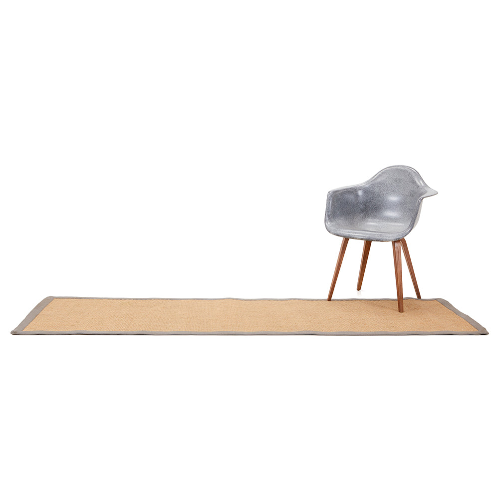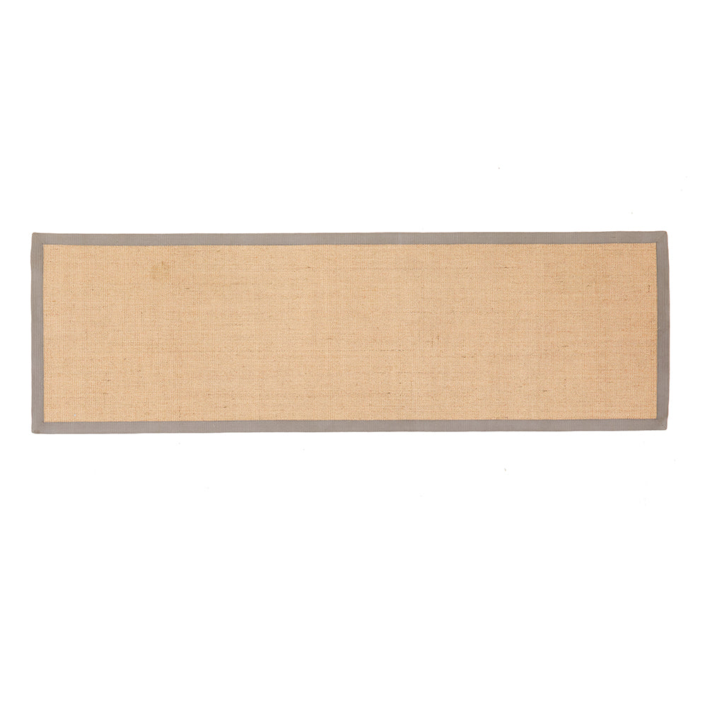 Details: Long tan rug with grey border Dimensions: 96" W x 30" D Quantity: 1
