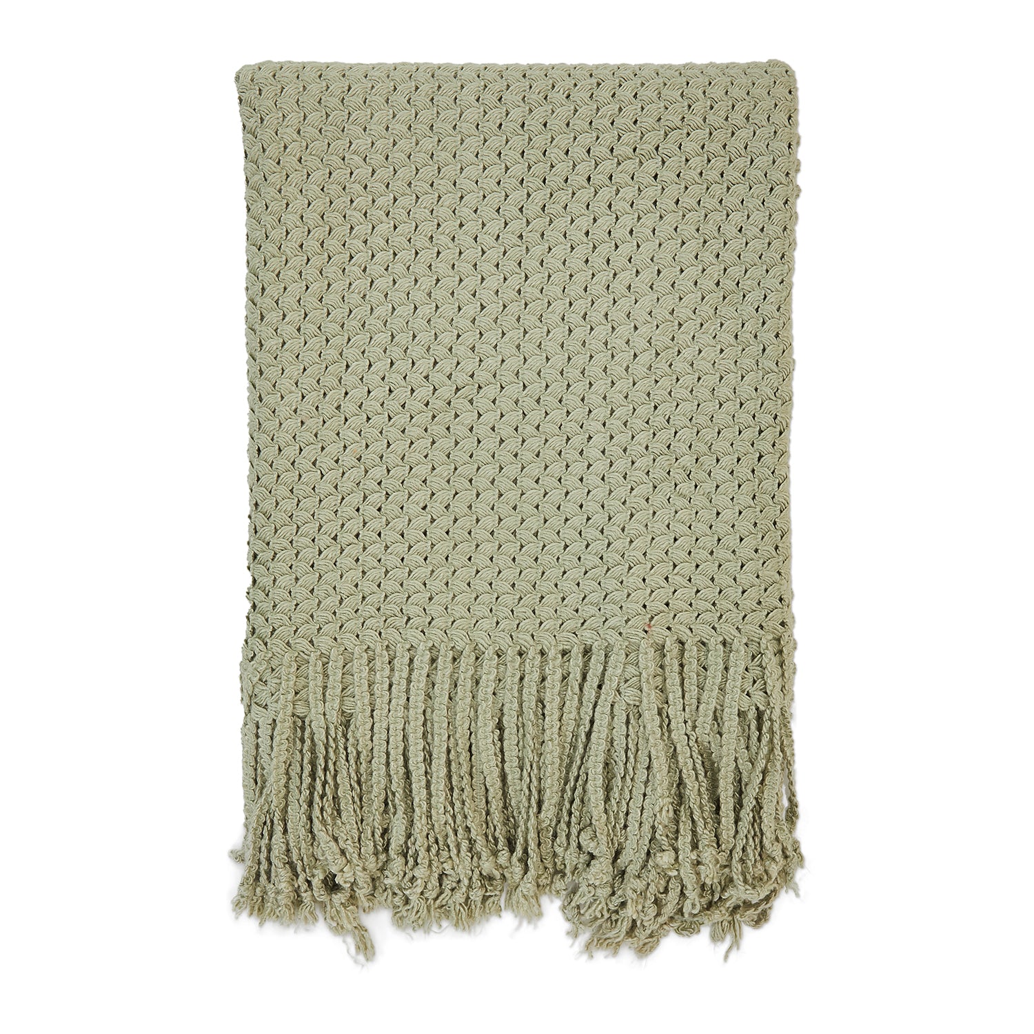 Details: White/Off-White, Yarn, Knit, Fringe Dimensions: 56" W x 66" Long