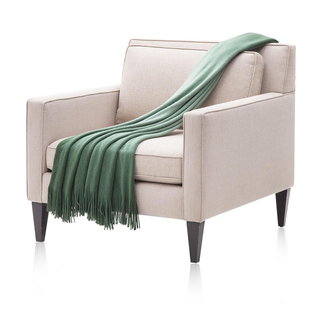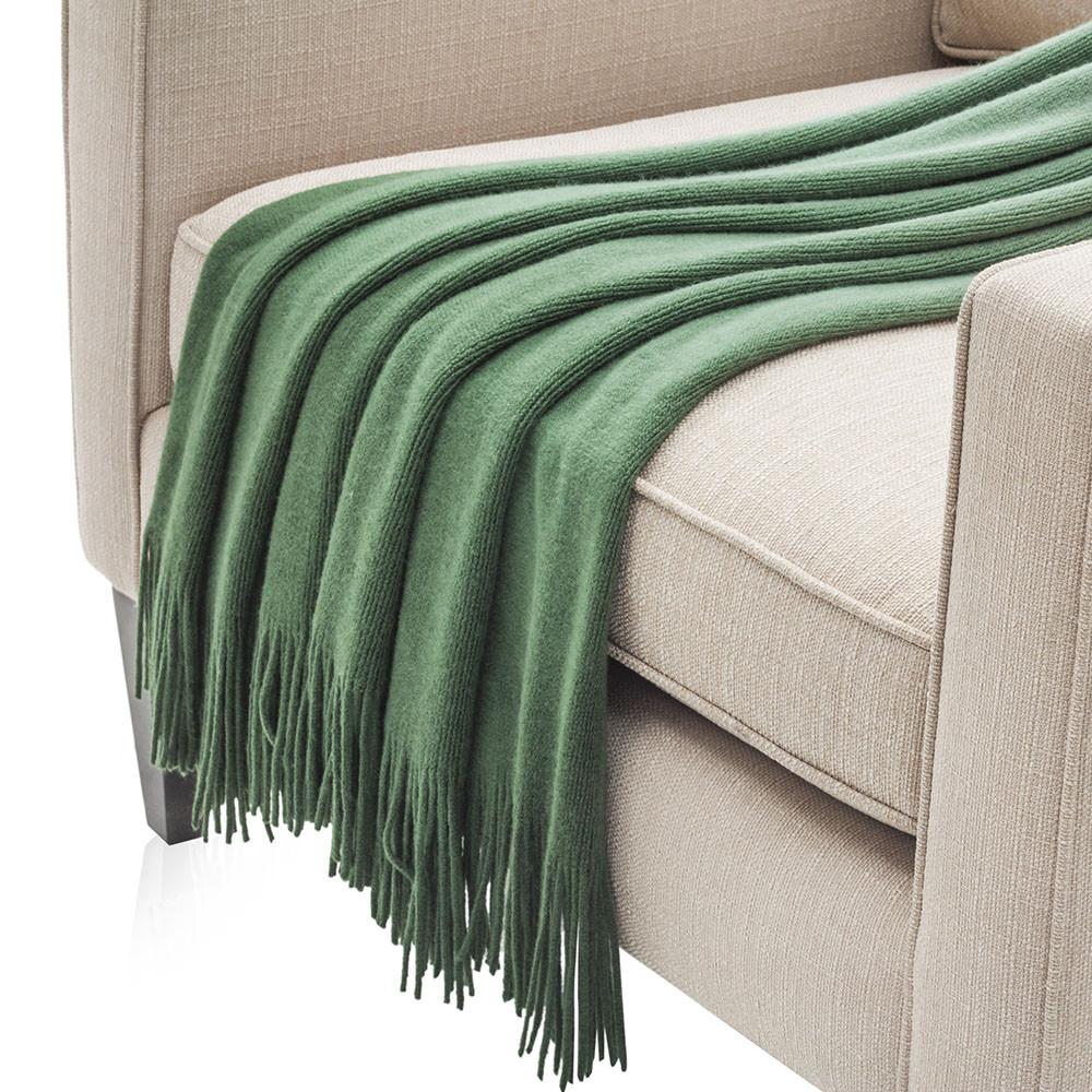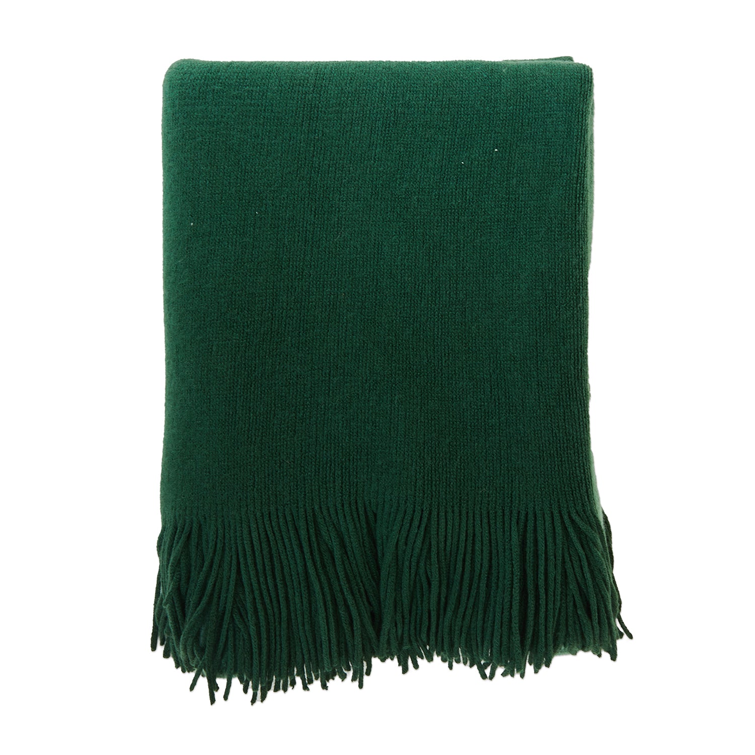 Details: Green plaid wool blanket with tassels Dimensions: 43" H x 62" W Quantity: 1