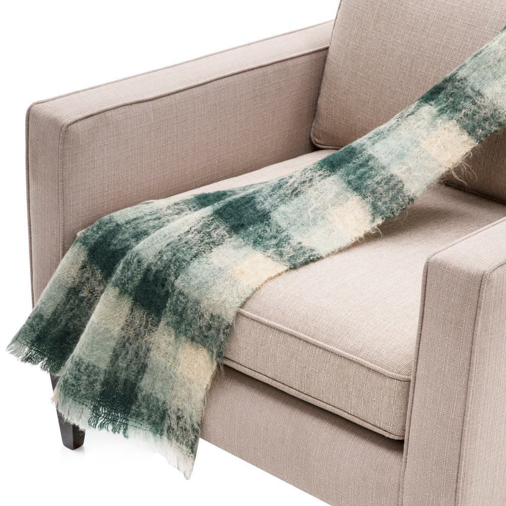 Details: Green and red plaid throw Dimensions: 62" W x 99" D Quantity: 1
