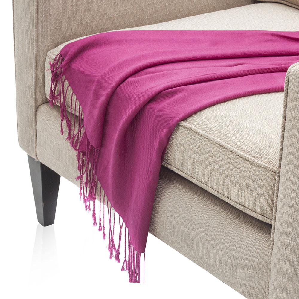 Details: Fuschia, Purple, Warm, Fringe Dimensions: 47" W x 62" Long