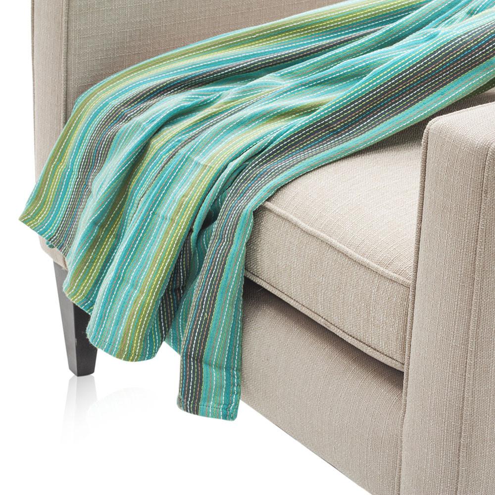 Details: Blue Aqua, Green, Brown, Multicolored, Striped, No Fringe Dimensions: 84" W x 101" Long