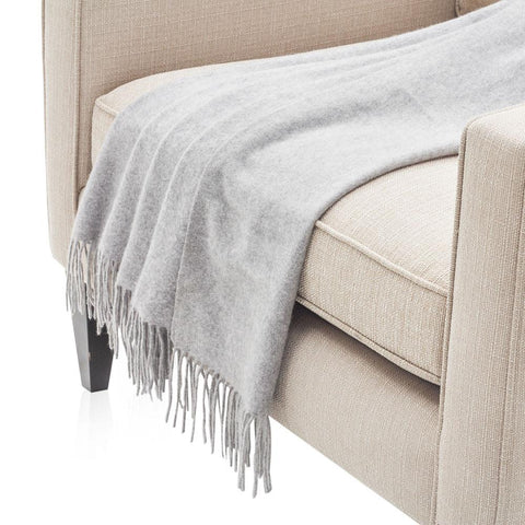 Details: Light Grey, Wool Blend, Long Fringe Dimensions: 50" W x 70" Long