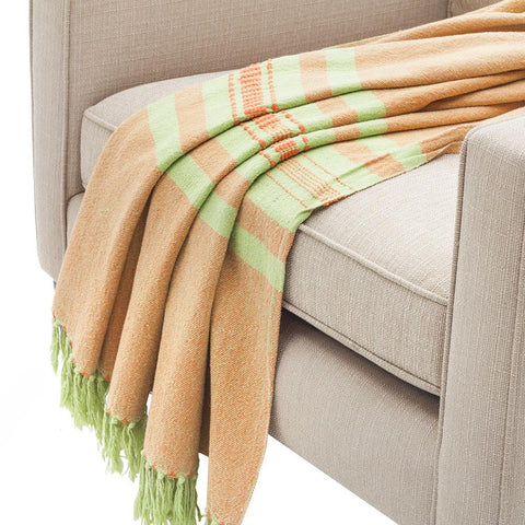 Details: Pale orange with lime green stripes Throw/Turkish Towel, with Green Fringe Dimensions: 60" W x 79" Long