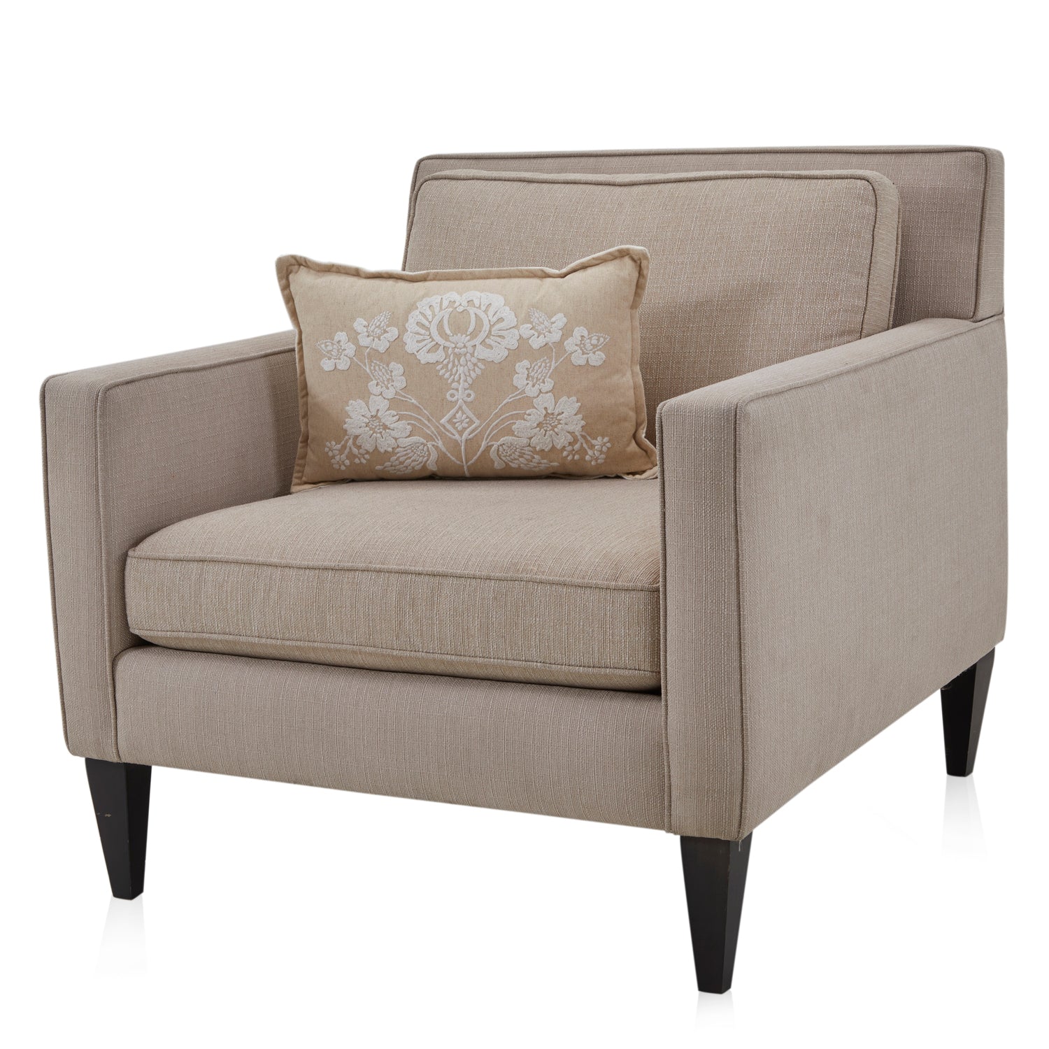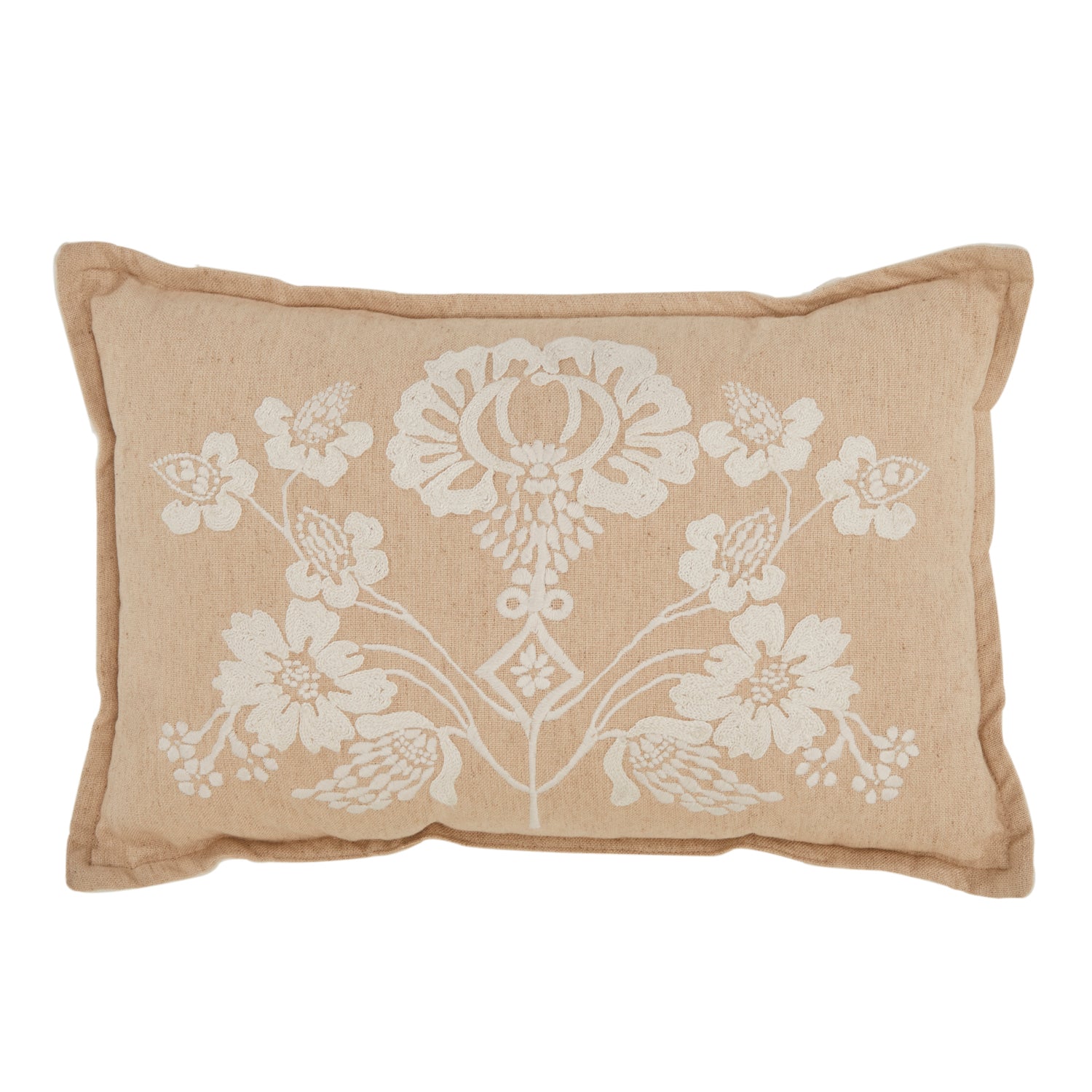 Details: Tan lumbar pillow with embroidered white flowers Dimensions: 12" H x 19" W x 4" D Quantity: 1