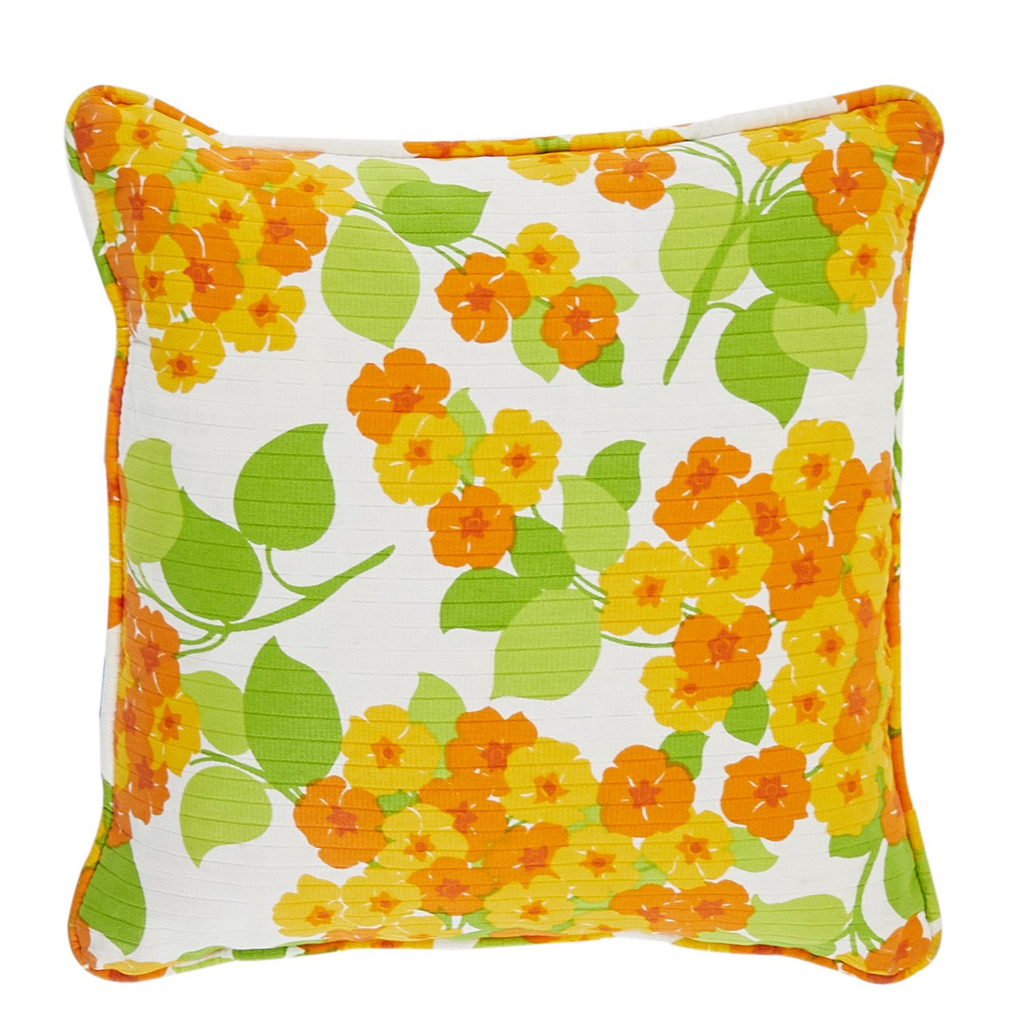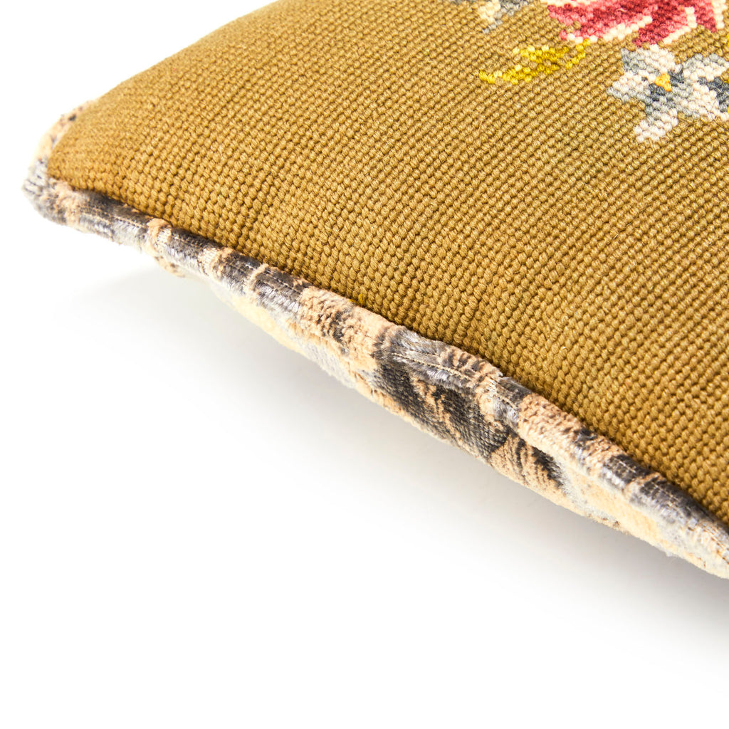 Details: Decorative pillow with needlepoint green flowers with an orange bulb Dimensions: 13" H x 13" W x 3" D