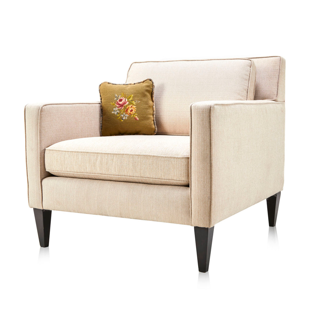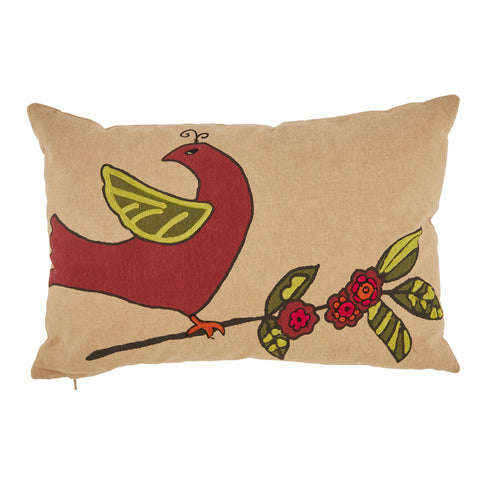 Details: Embroidered red and green bird on flower branch on tan lumbar pillow Dimensions: 11" H x 17" W x 6" D Quantity: 1