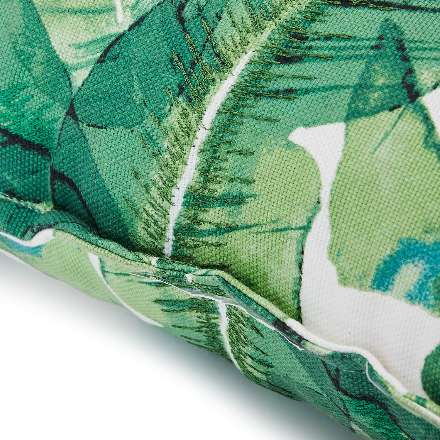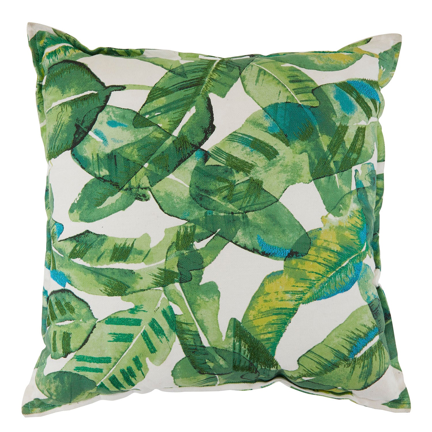 Details: Green banana leaves pattern with white fabric background Dimensions: 23" H x 23" W x 9" D Quantity: 2