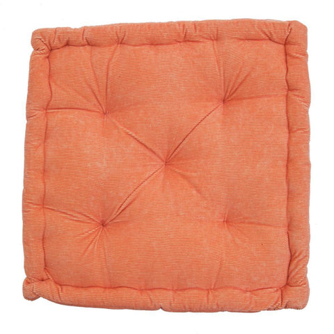 Details: Orange square shaped pillow with tufts Dimensions: 5.5" H x 17.5" W x 17.5" D Quantity: 1