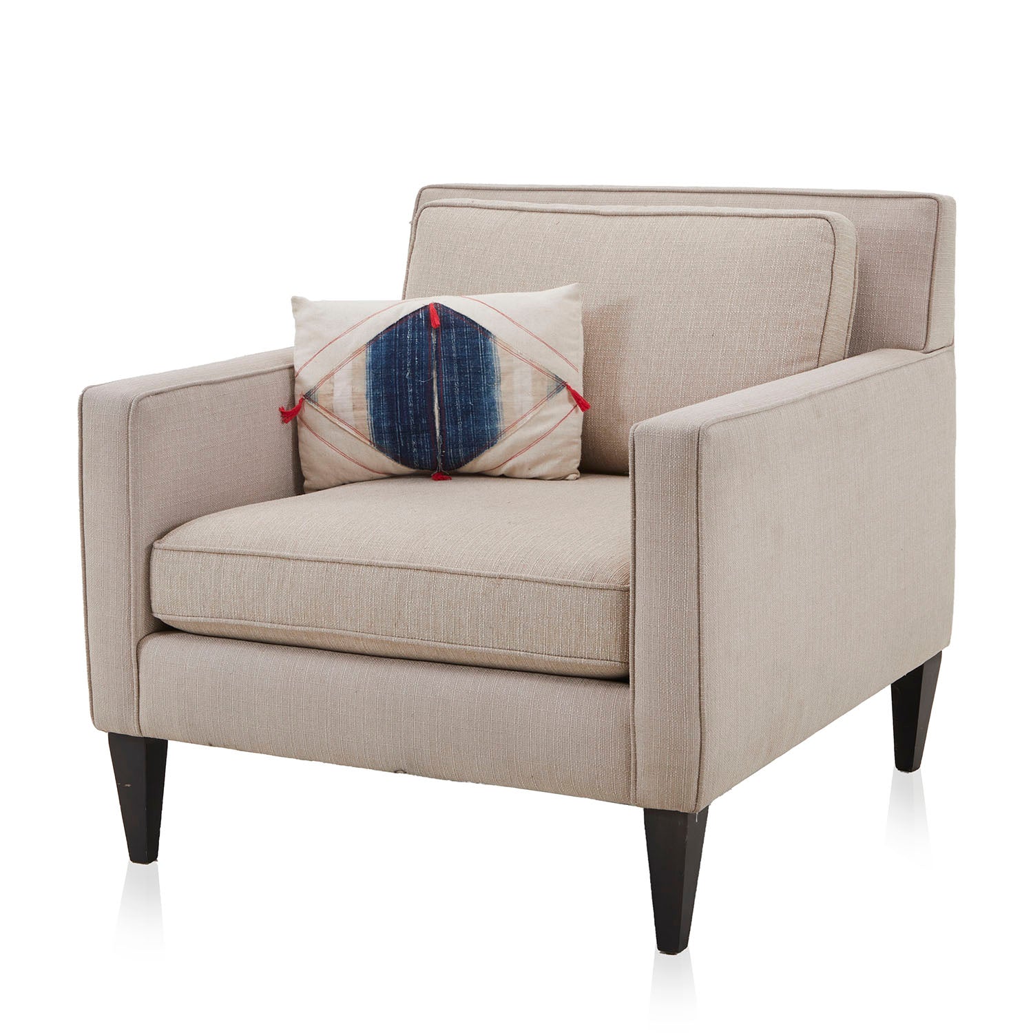 Details: Square pillow with monochromatic arrow print and blue knight border Dimensions: 17" H x 17" W x 6" D Quantity: 1