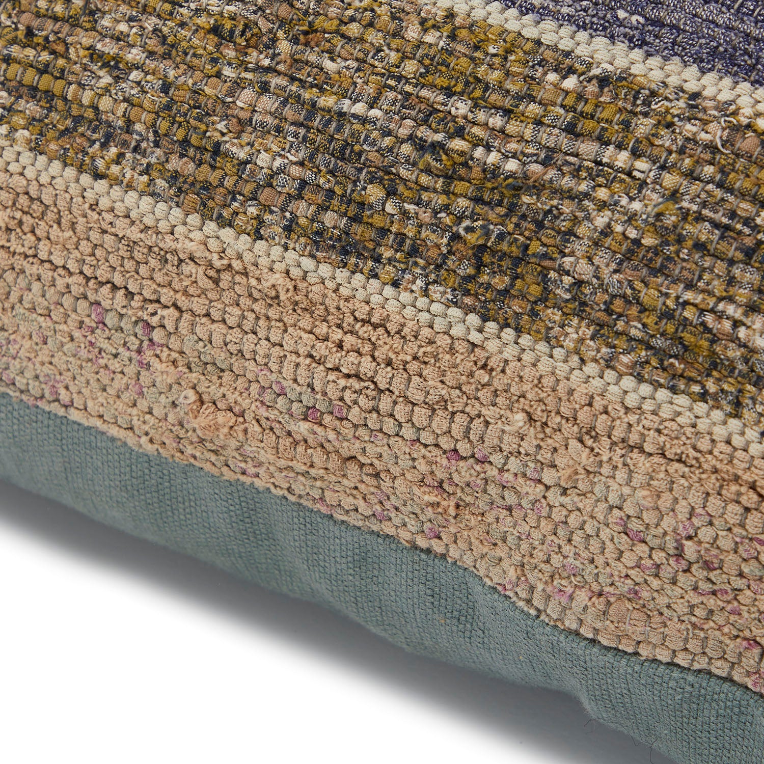 Details: Square shaped multi colored bohemian pillow with stripes of varying textures Dimensions: 12" H x 12" W x 4" D