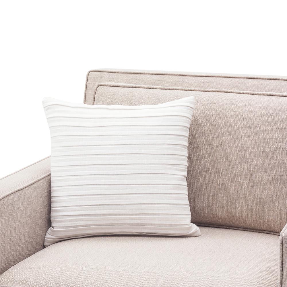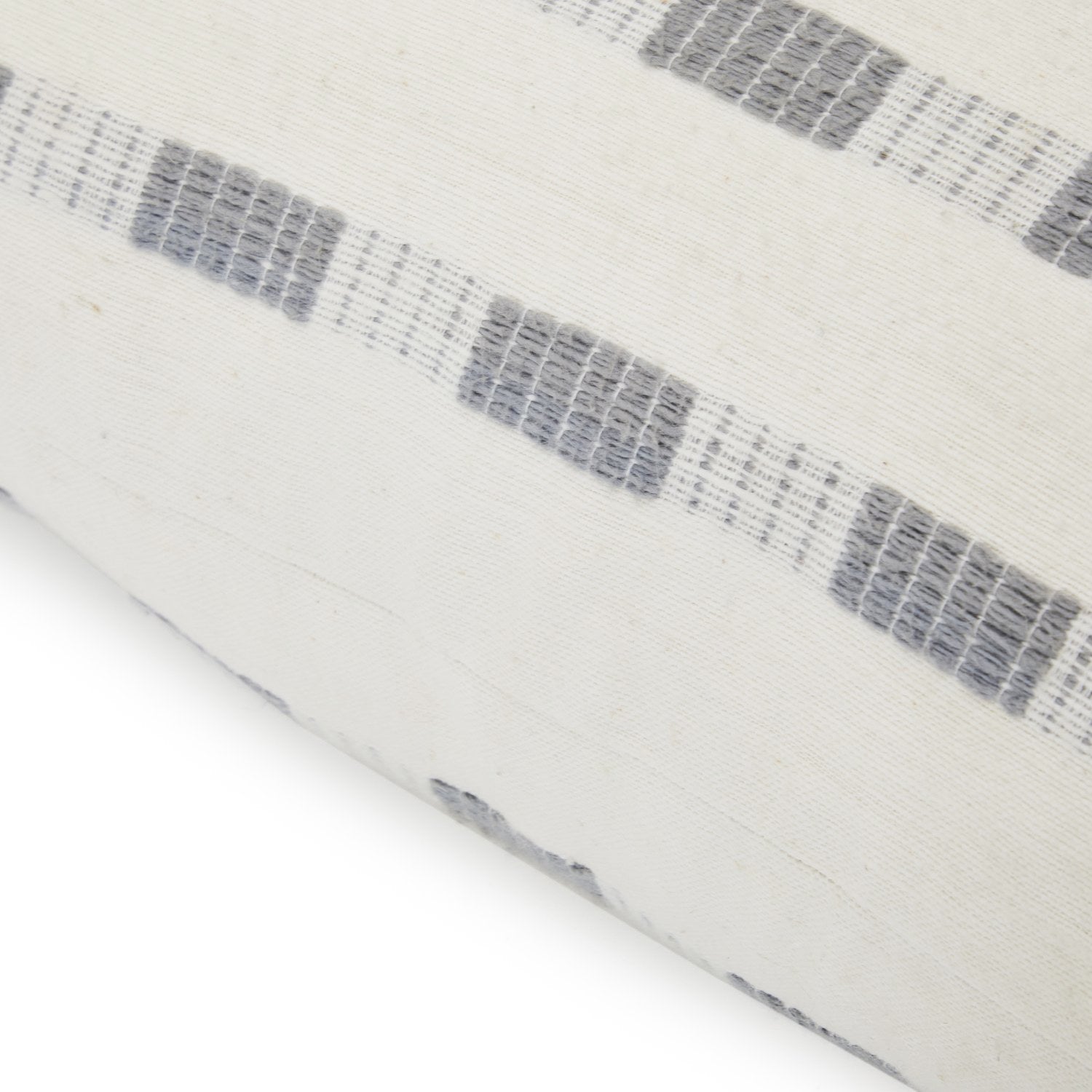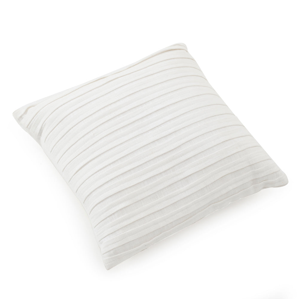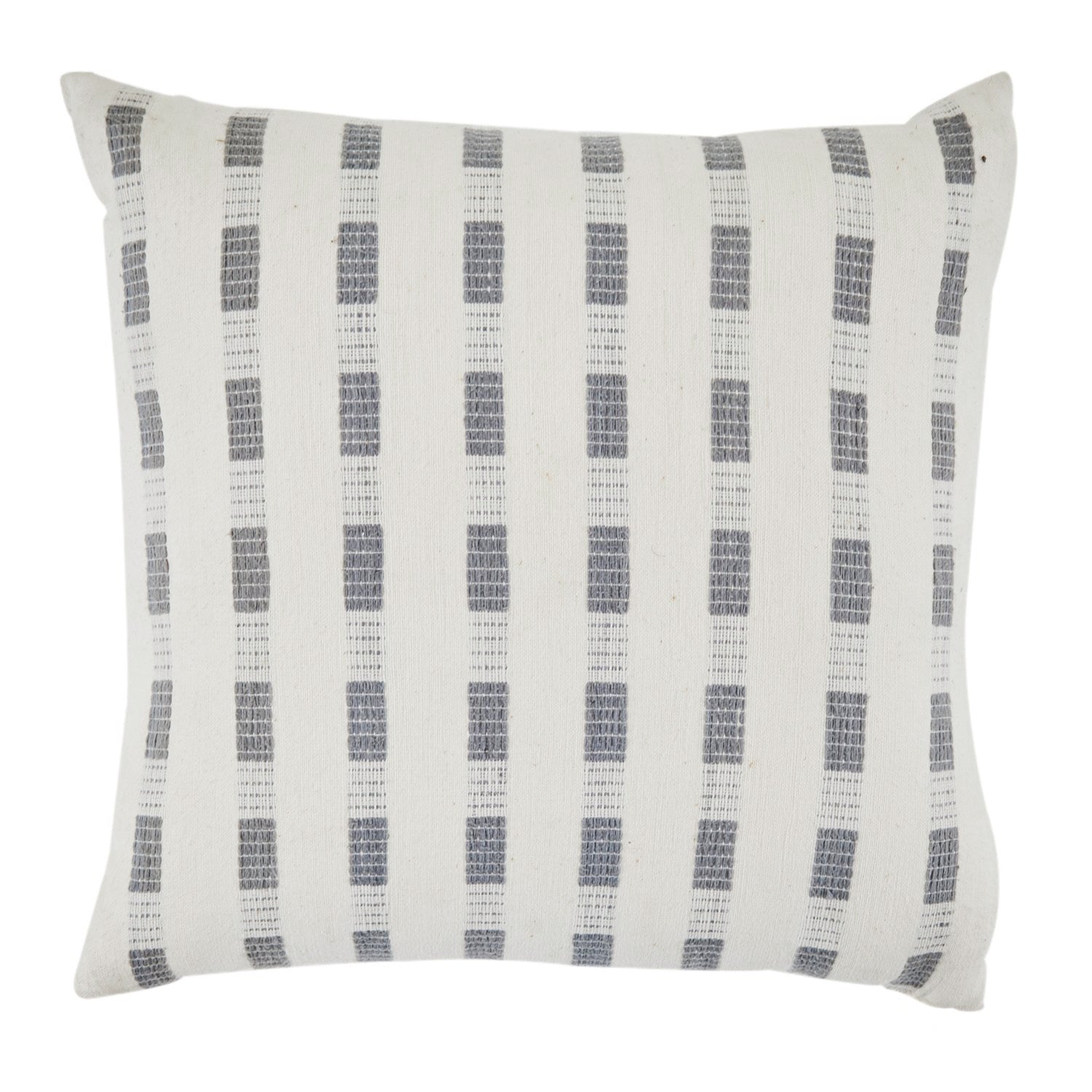 Details: White square pillow with horizontal textured stripes Dimensions: 16" H x 16" W Quantity: 2