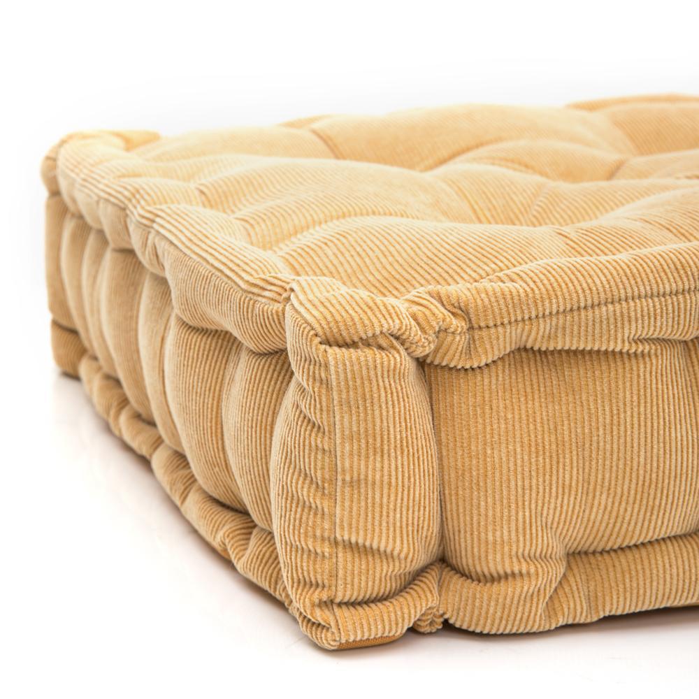 Details: Butter yellow square shaped pillow with tufts Dimensions: 5.5" H x 17.5" W x 17.5" D Quantity: 1