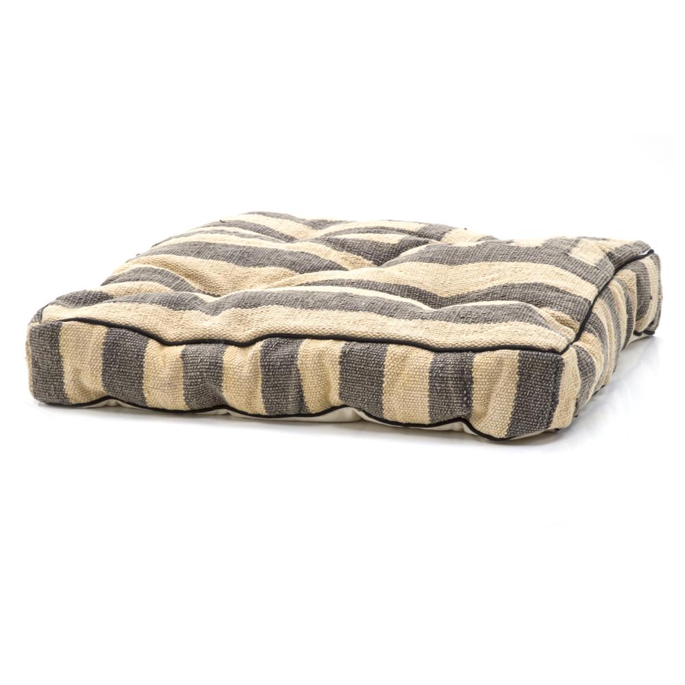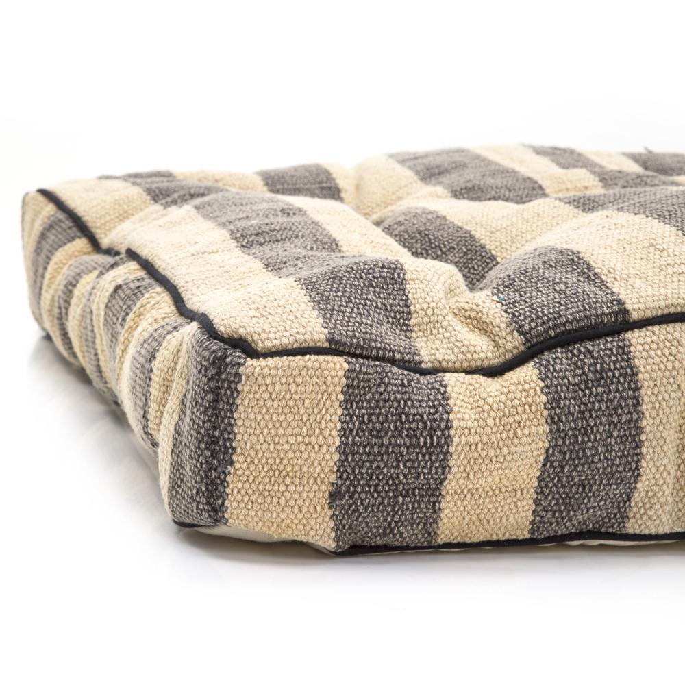 Details: Square-shaped floor pillow with tan and black stripes Dimensions: 6" H x 36" W x 36" D Quantity: 1