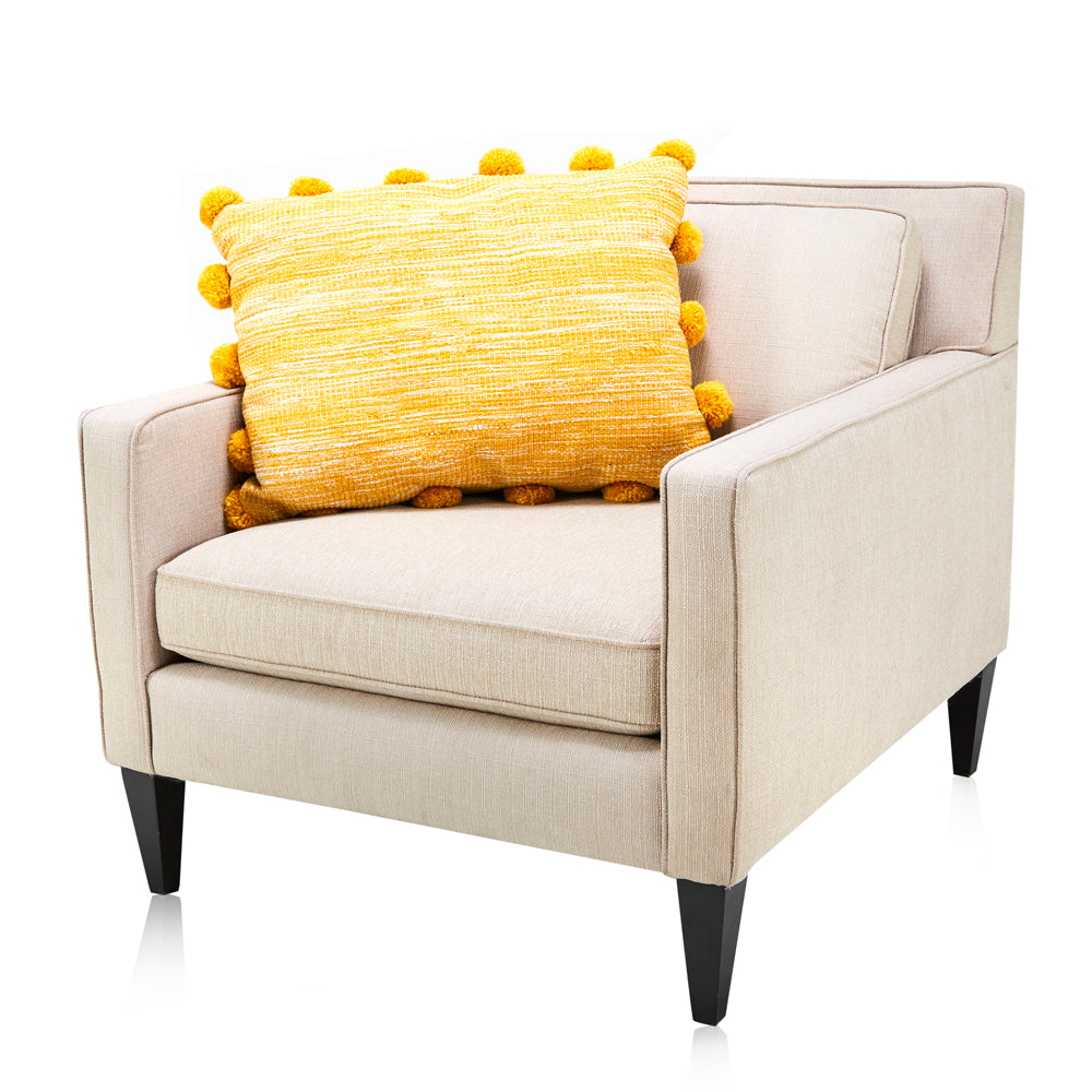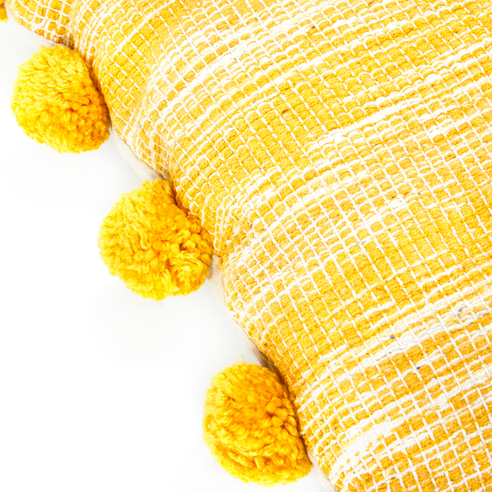 Details: Yellow stitched pillow with pom pom tassels Dimensions: 20" H x 25" W x 6" D Quantity: 1