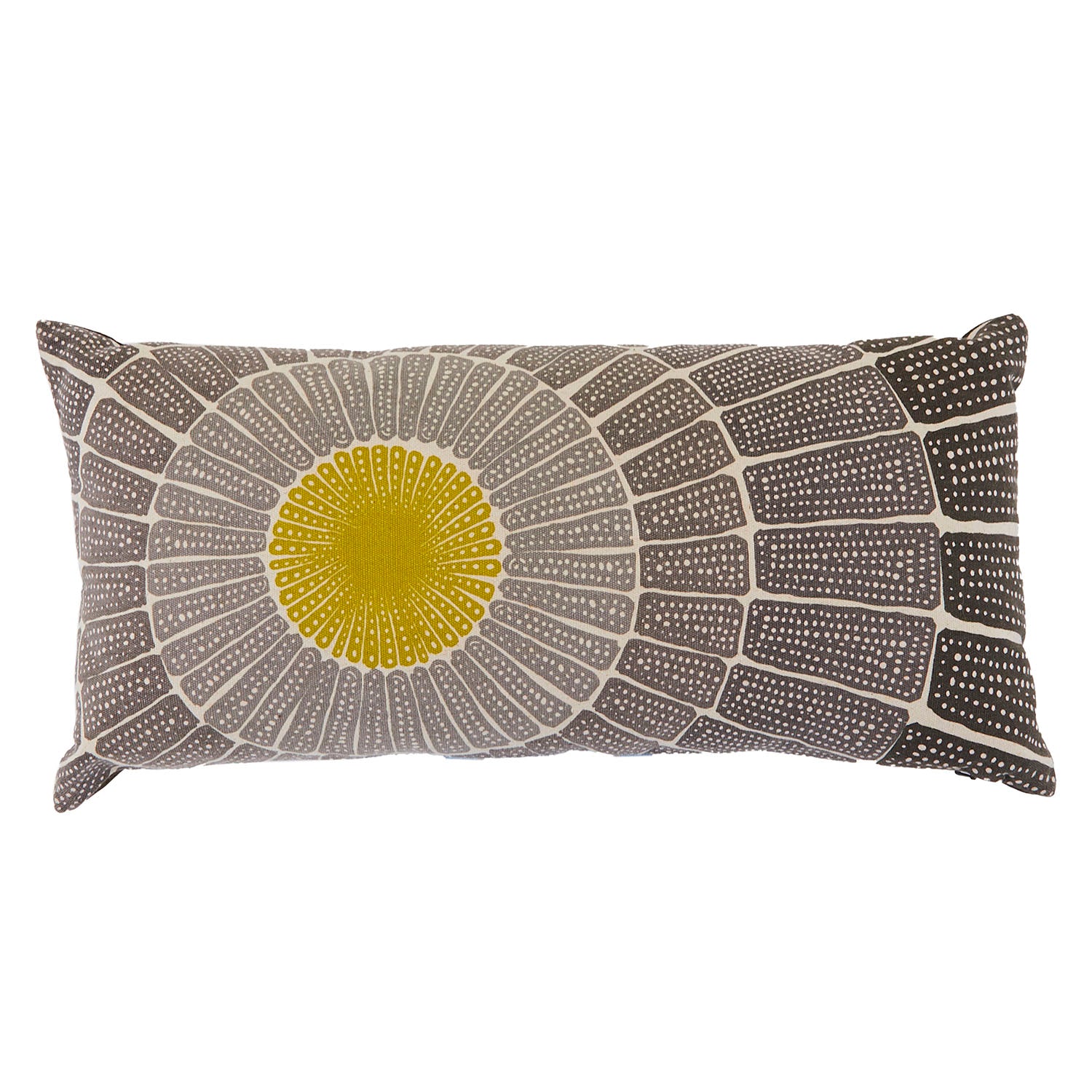 Details: Grey and yellow sun pillow Dimensions: 11" H x 21" W x 6" D Quantity: 1