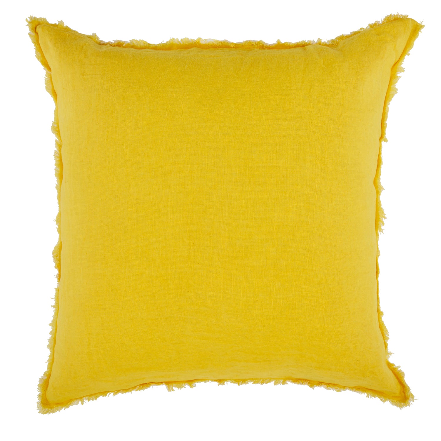 Details: Golden yellow plush pillow with fringed border Dimensions: 20" H x 20" W x 7" D Quantity: 1