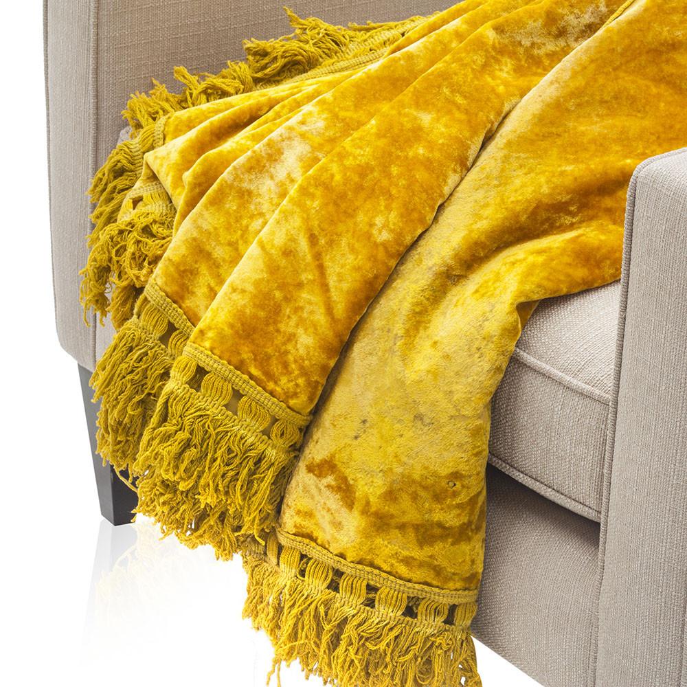 Details: Yellow, Velvet, Royal, Embellished Fringe Dimensions: 115" W x 115" Long Quantity: 1