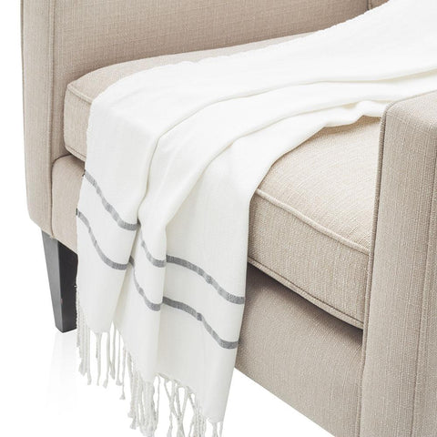 Details: White, Grey Stripes, Beach, Summer, Long Fringe Dimensions: 42" W x 74" Long