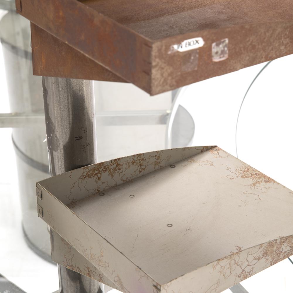 Details: Green, Wooden, Filing, Cabinet, Metal Hardware, Four Drawer, Office, American Metal Products Corporation, from St. Louis Mo Dimensions: 52 1/8" H x 14 7/8"...