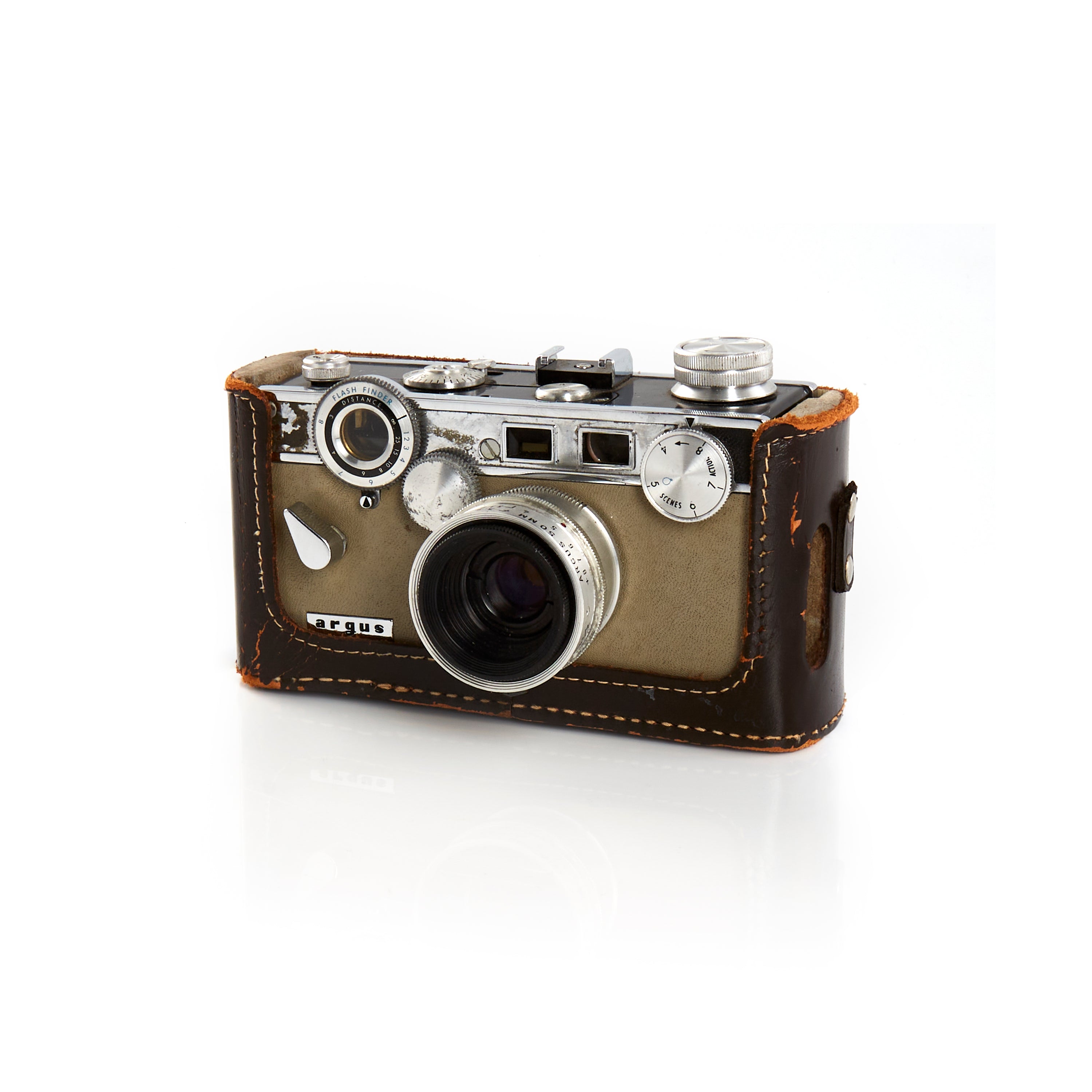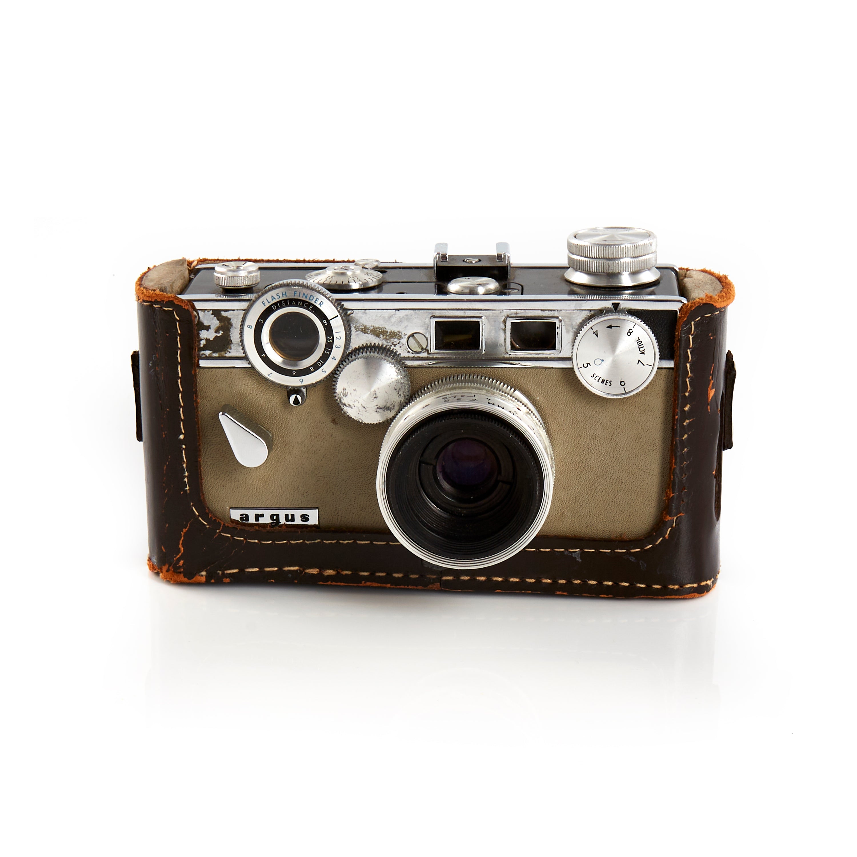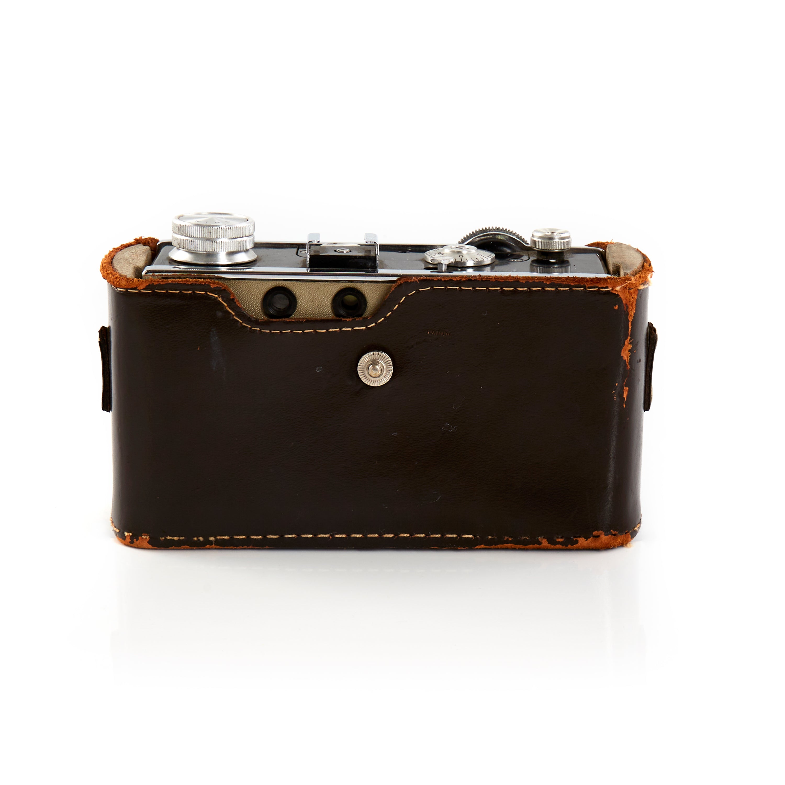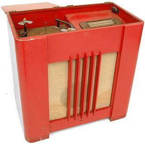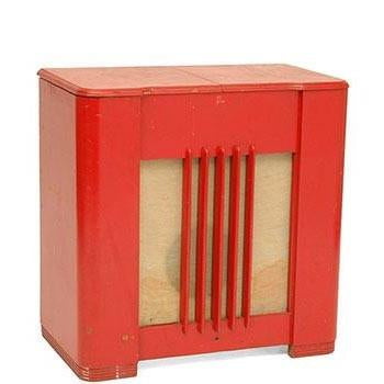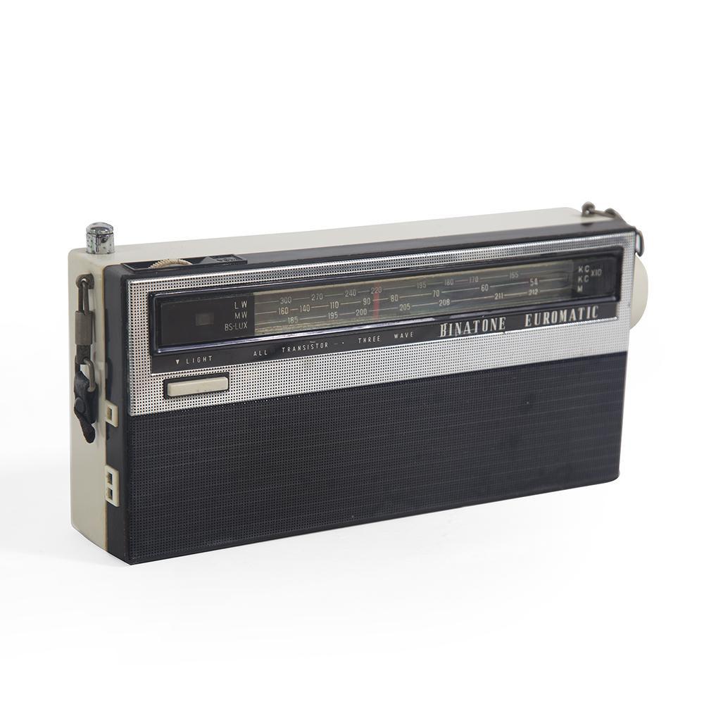 Description: Small portable vintage analog television with foldable antenna and handle for carrying. The body is constructed of beige plastic with silver metal accents. ...