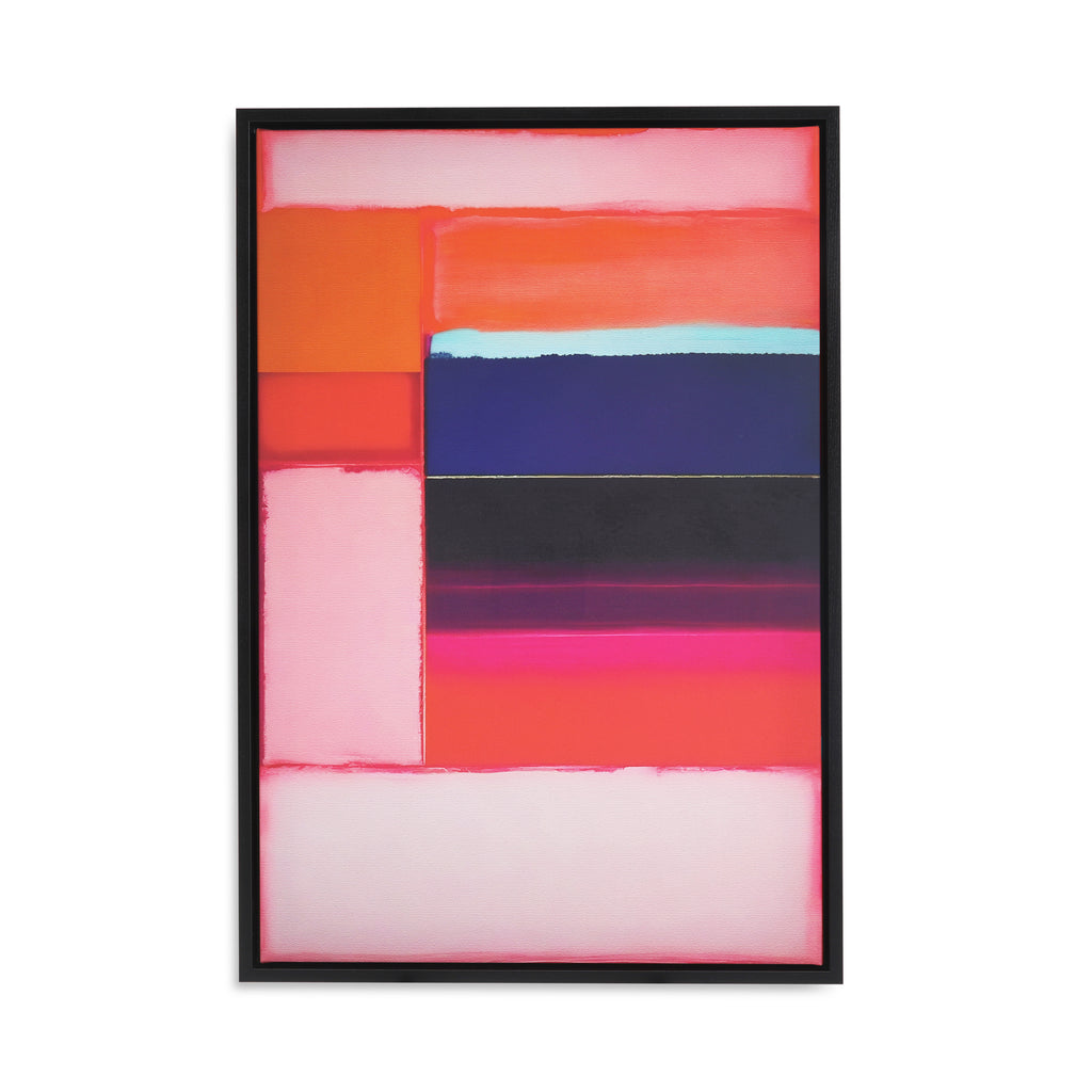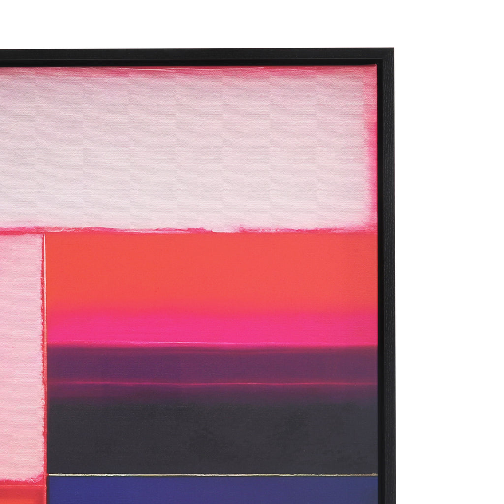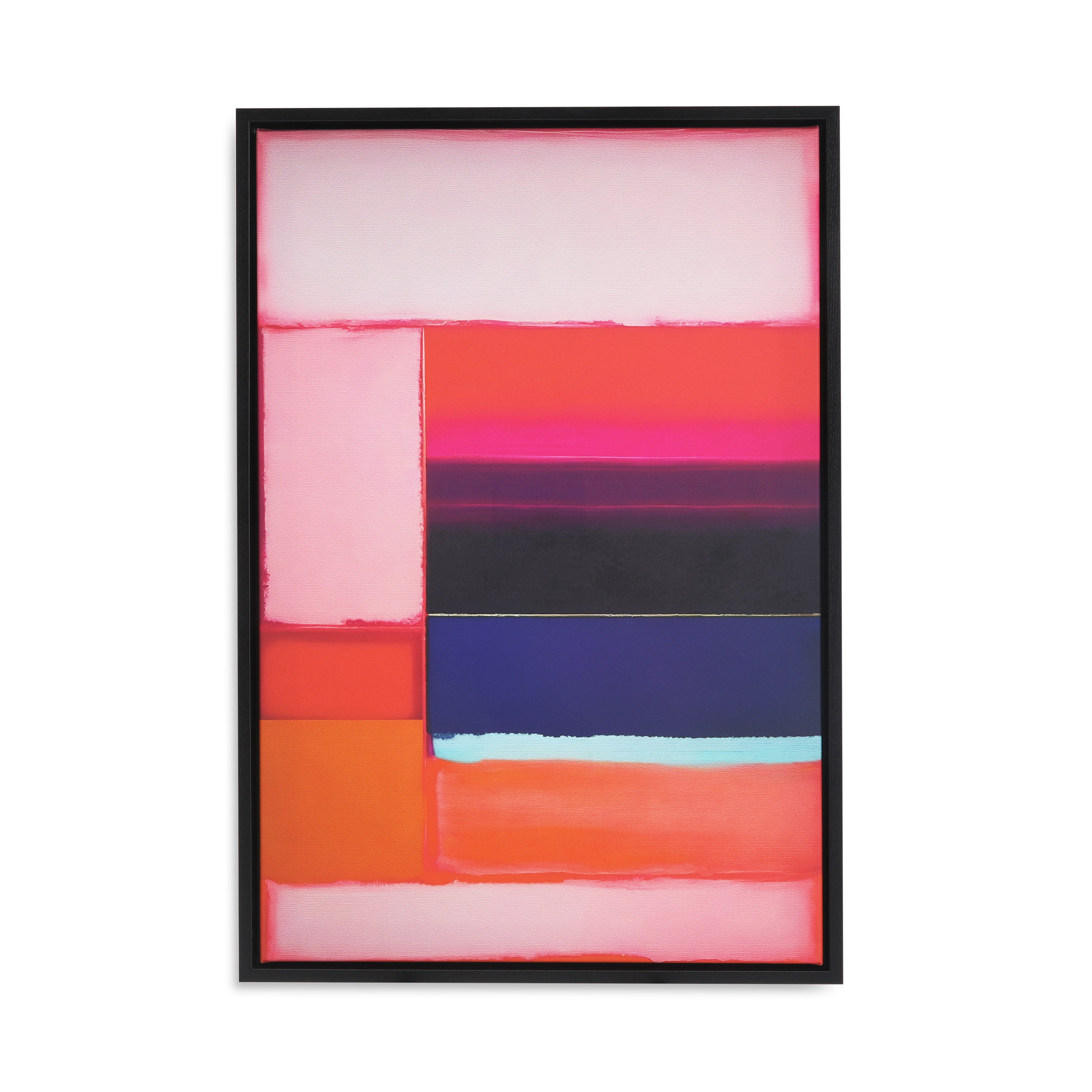 Details: Ethereal color blocking print on canvas in a black wood frame.