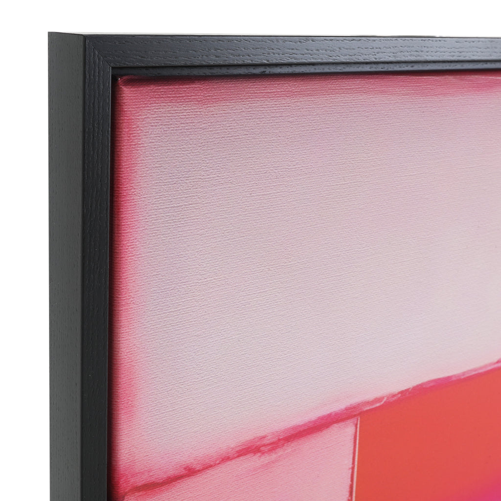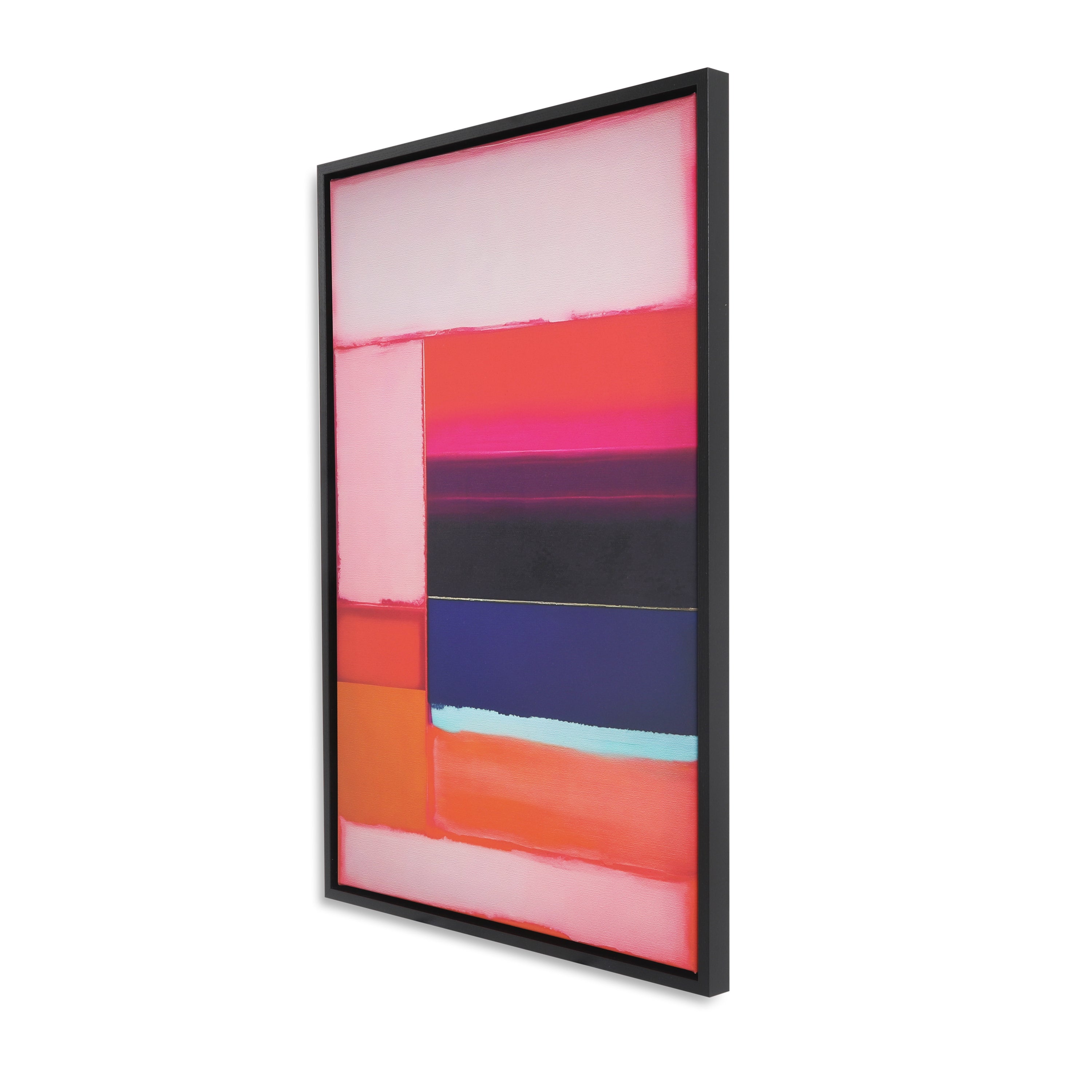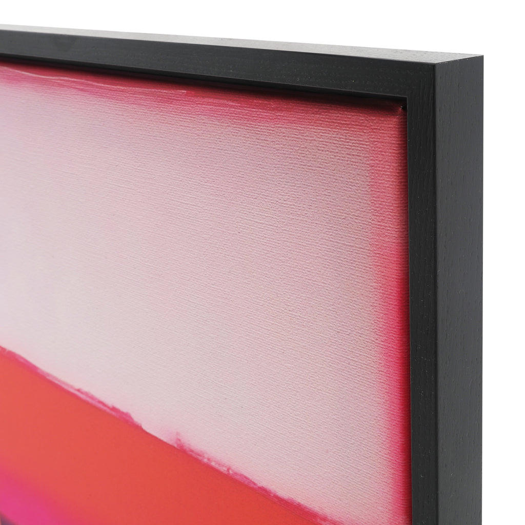 Details: Ethereal color blocking print on canvas in a black wood frame.