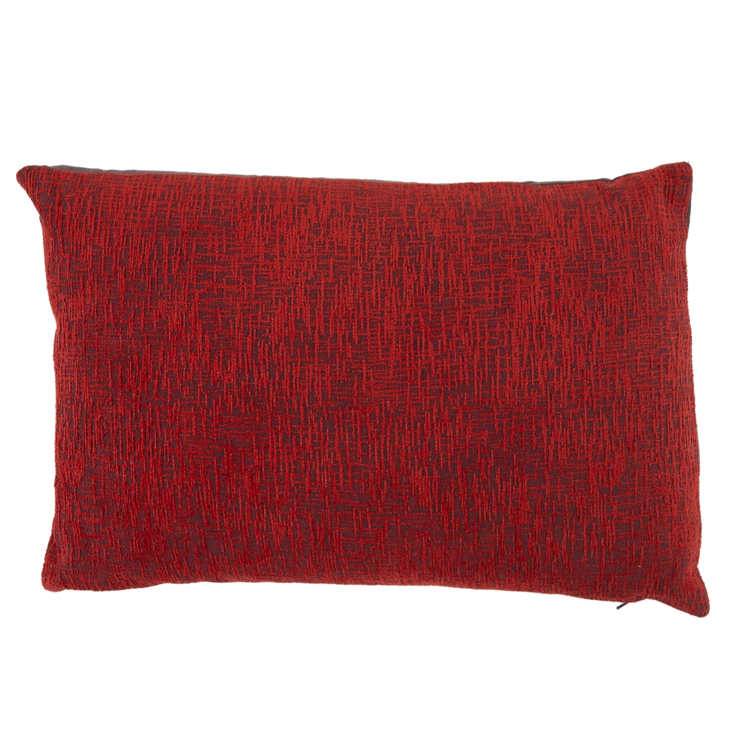 Details: Dark Grey lumbar pillow with red textured woven front