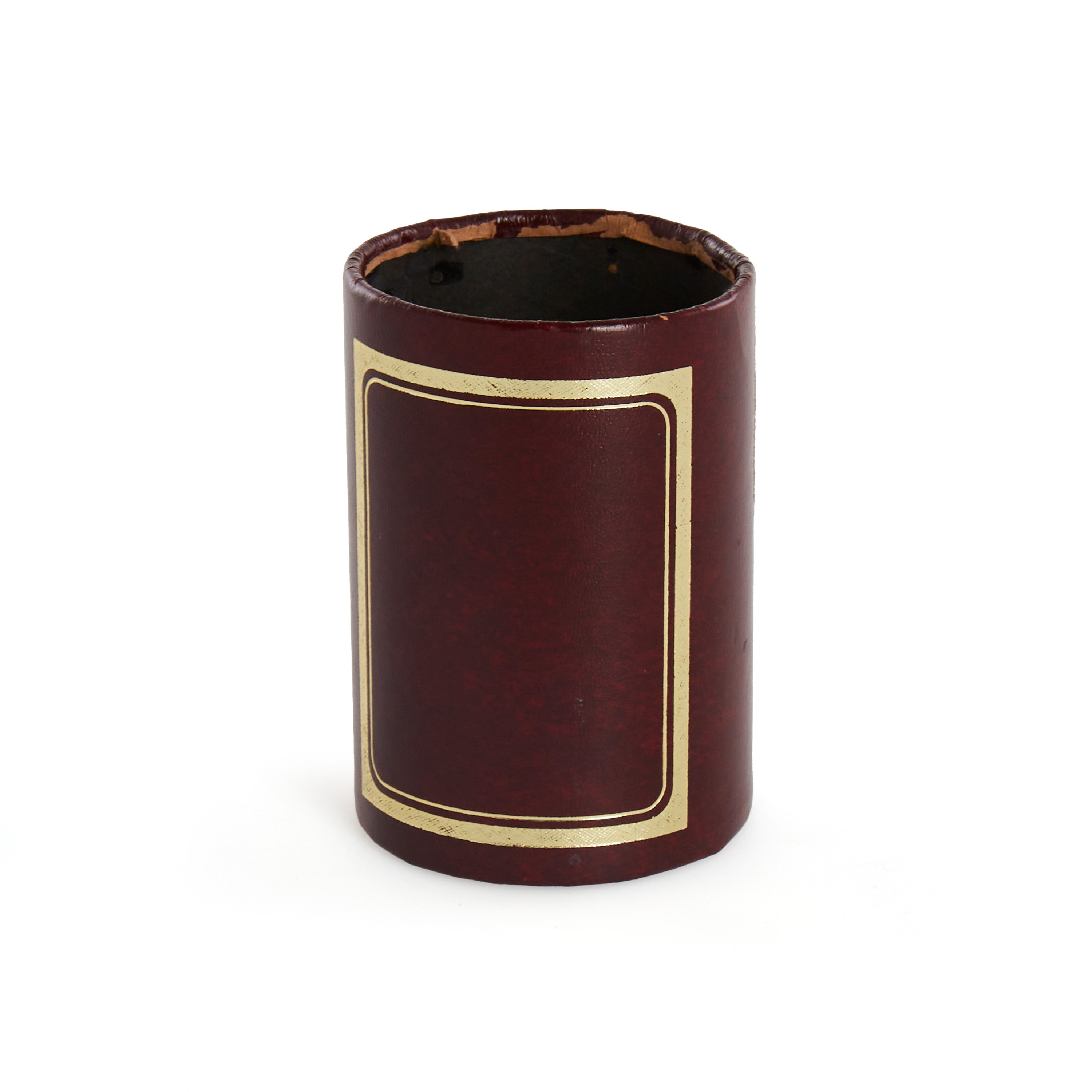 Brown and Gold Leather Wrapped Pen Holder