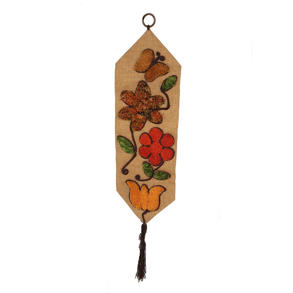 Details: Burlap hanging wall art with flower tufted string art and black tassel