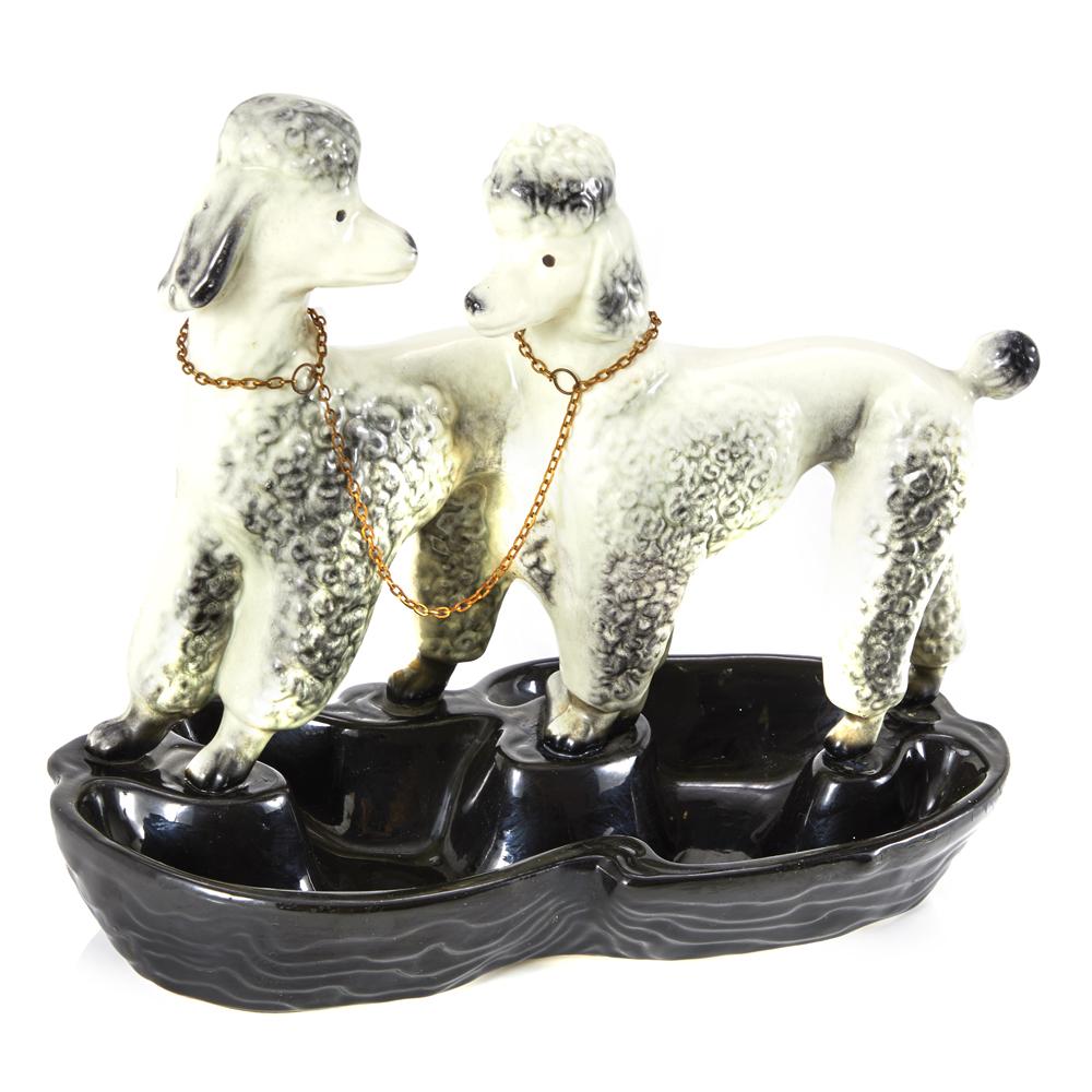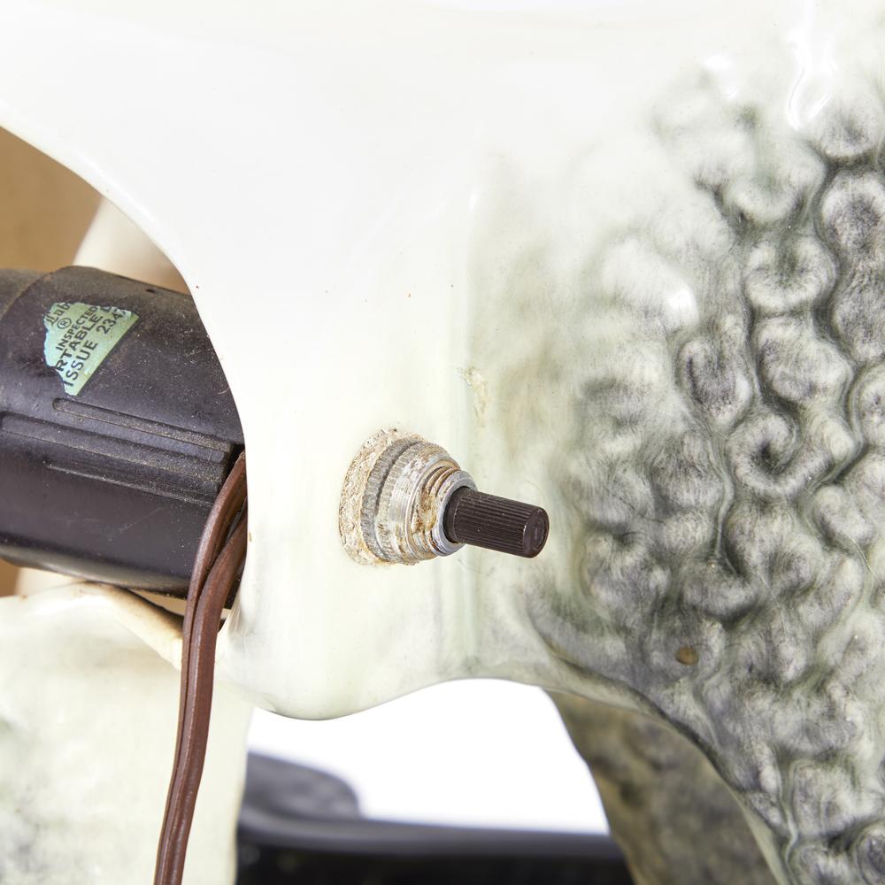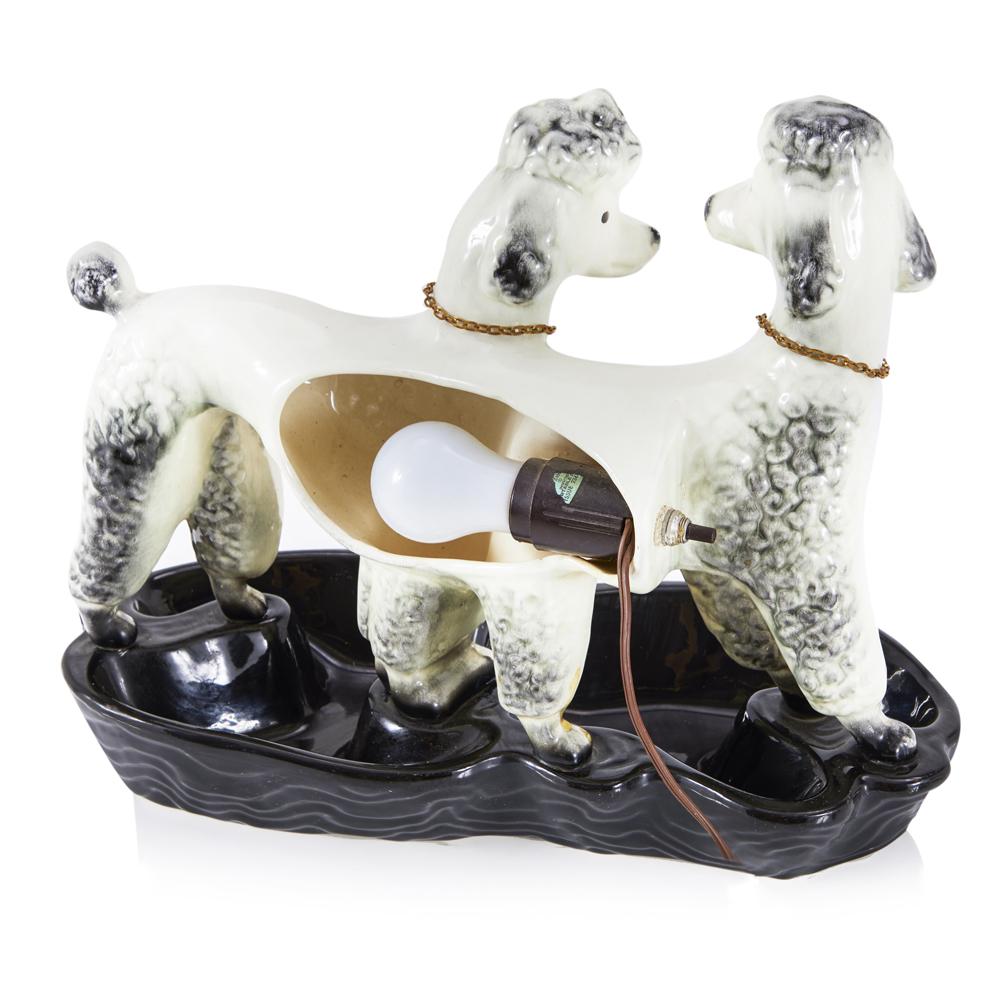 Details: Ceramic poodle lamp with black base and light bulb built in