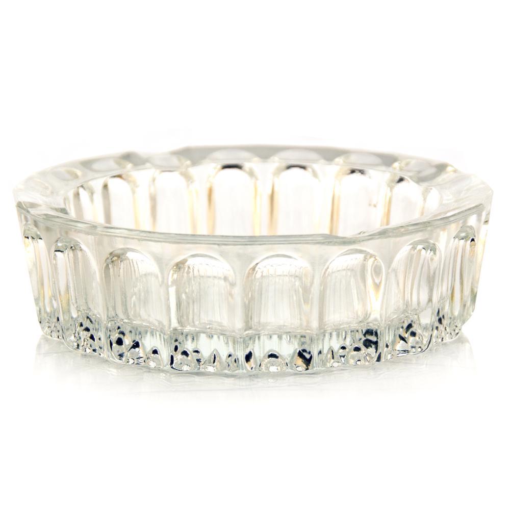 Details: Glass circular ashtray with arch decorations