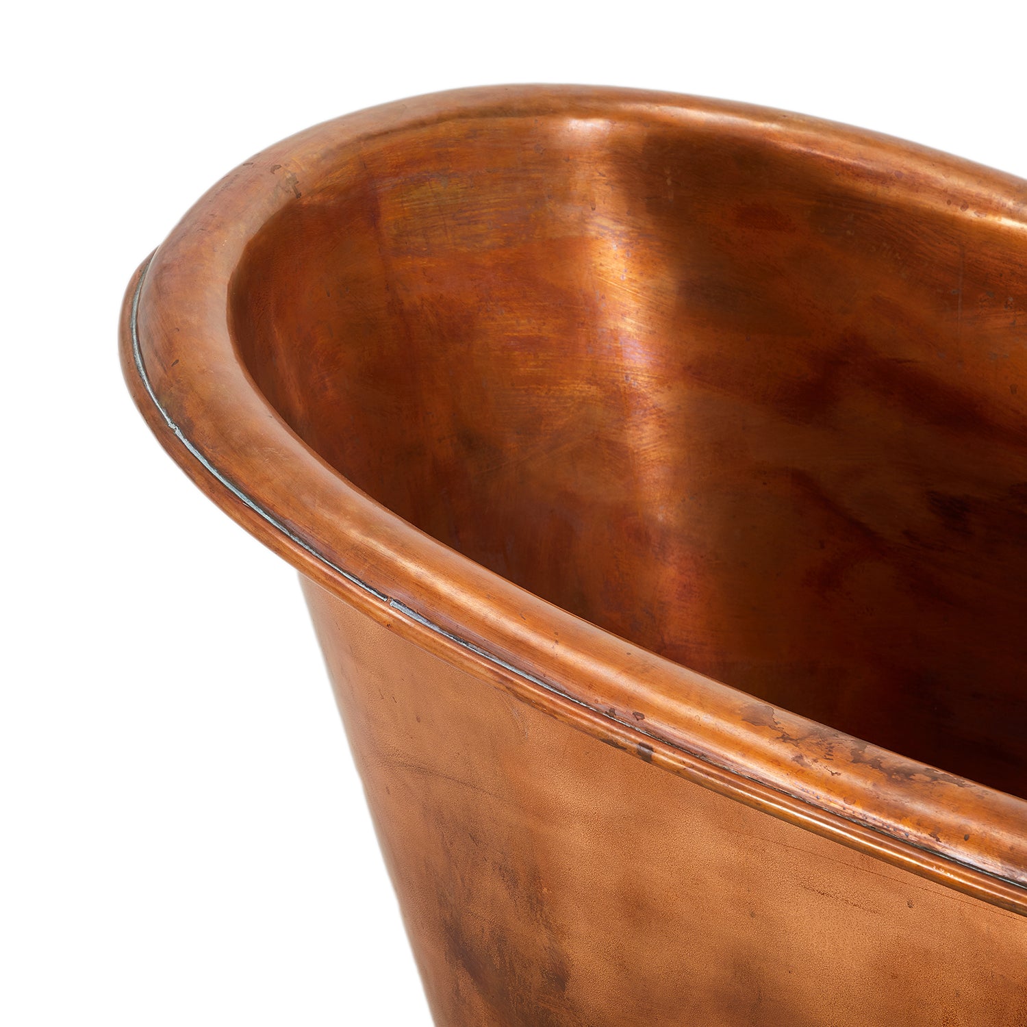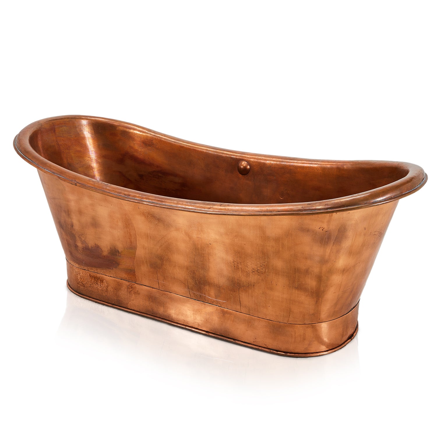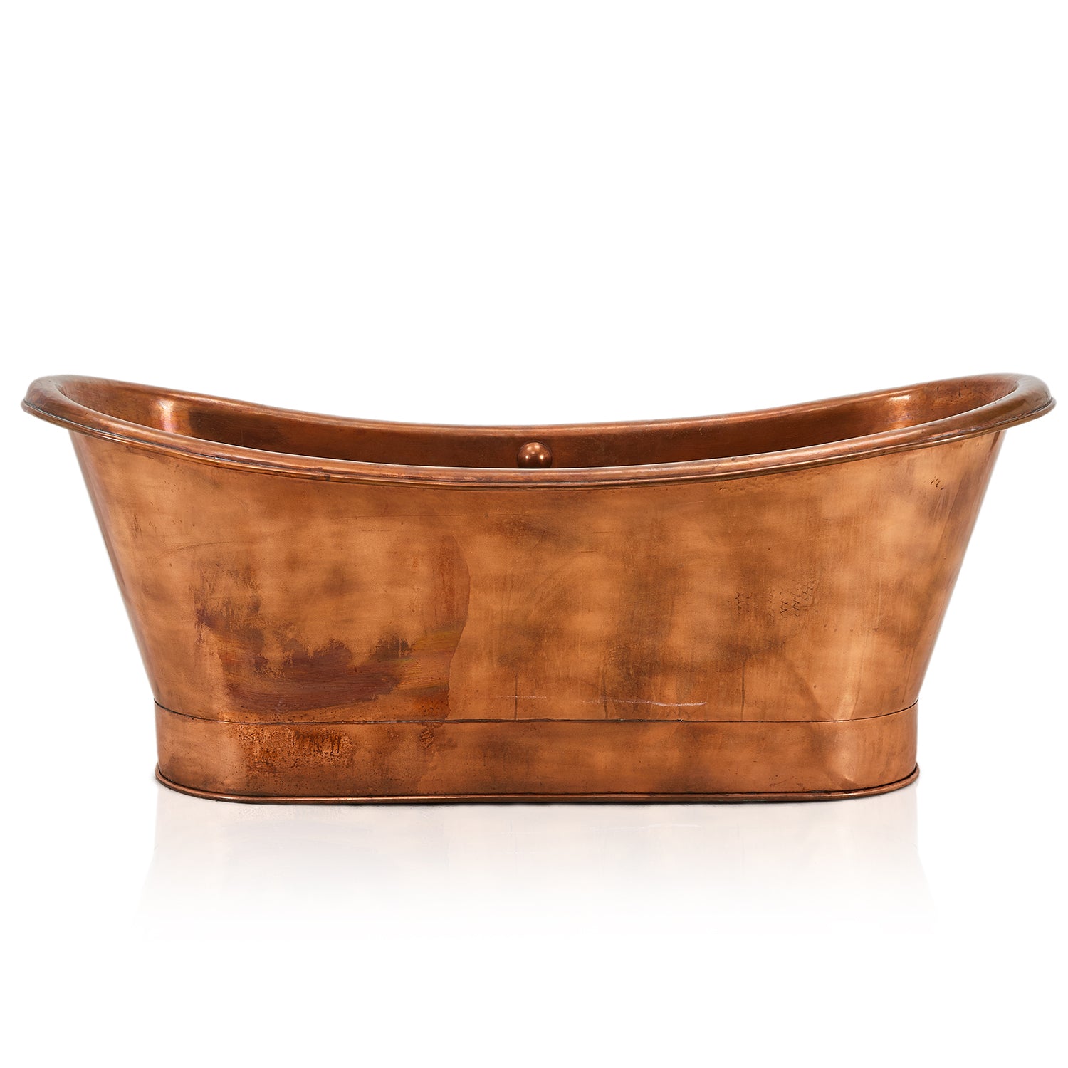 Details: Vintage free standing flat bottom bathtub furnished from unpolished copper