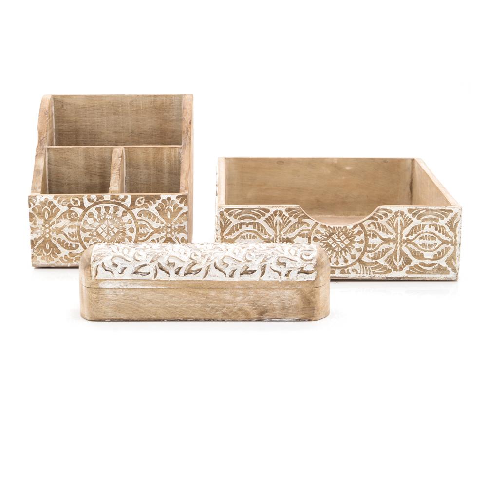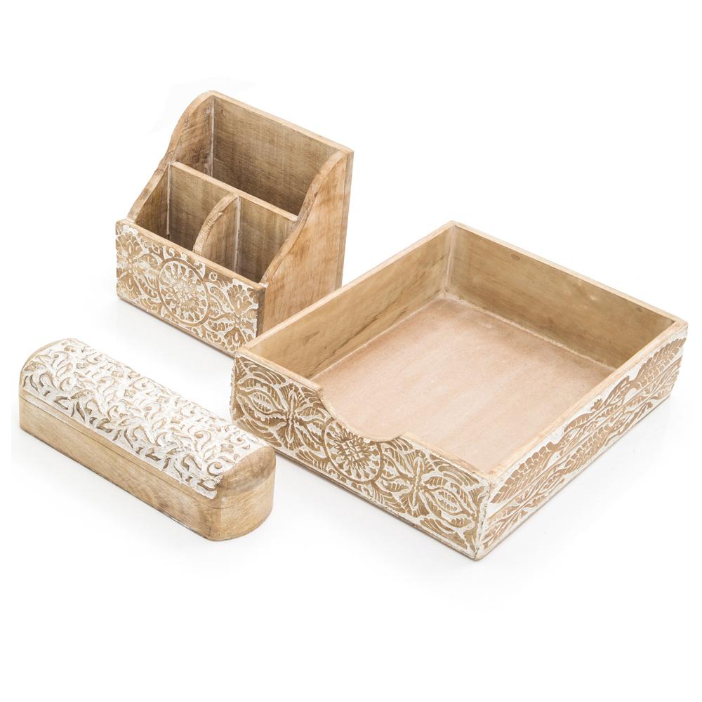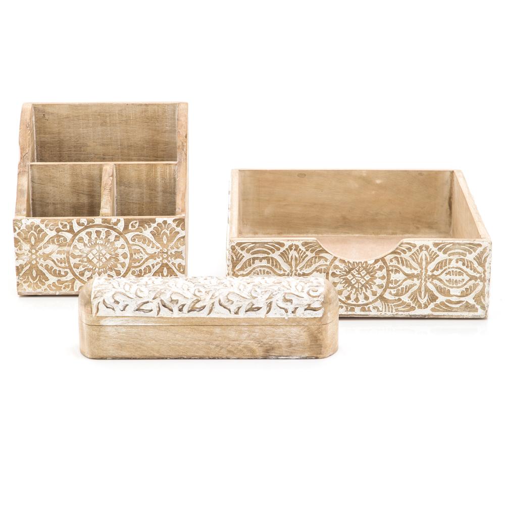 Details: Wood Box Set, Chic, Embossed, Office or Desk Set