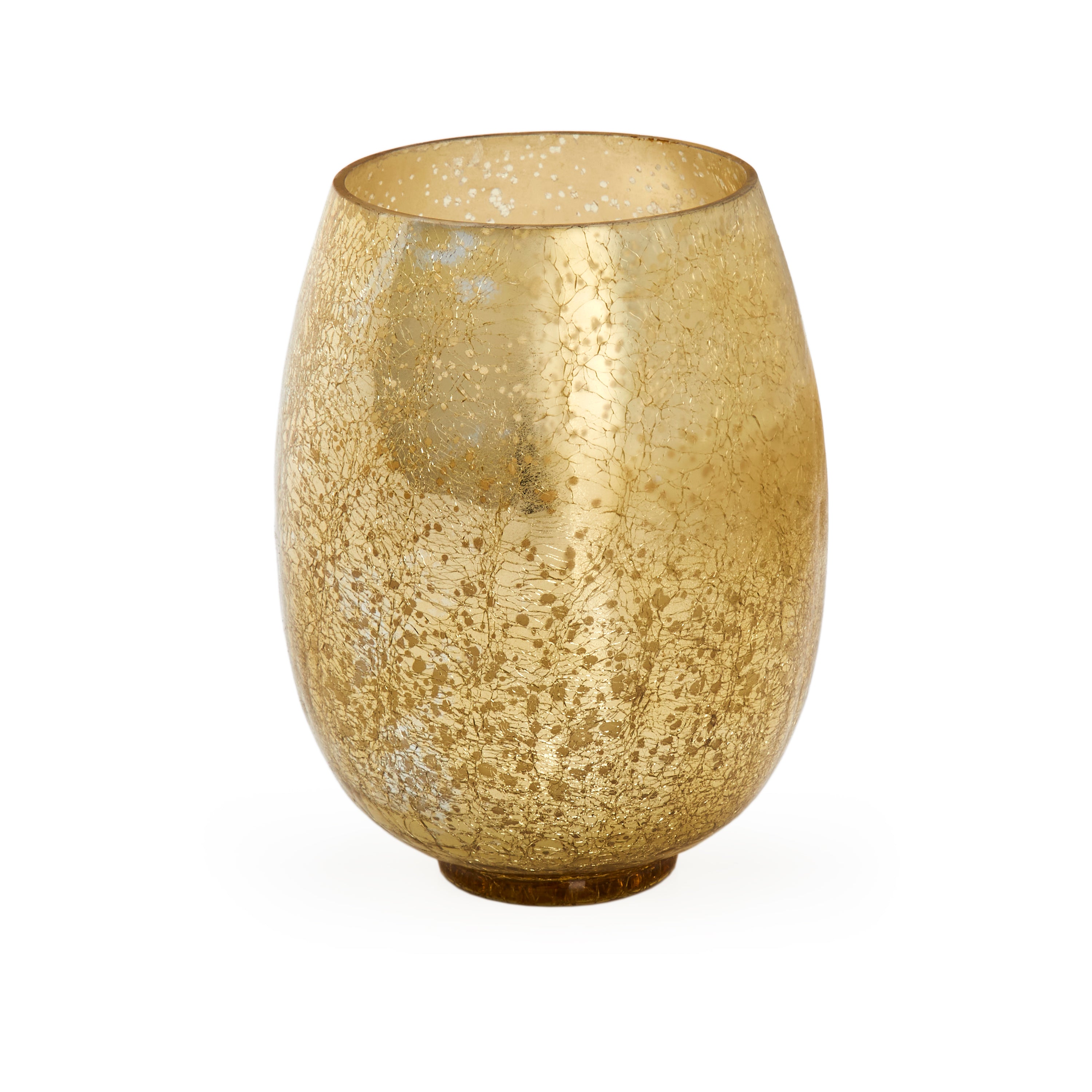 Description: Candle in gold glass container with antiqued mirror speckled finish. Candle is new, hasn't been lit.